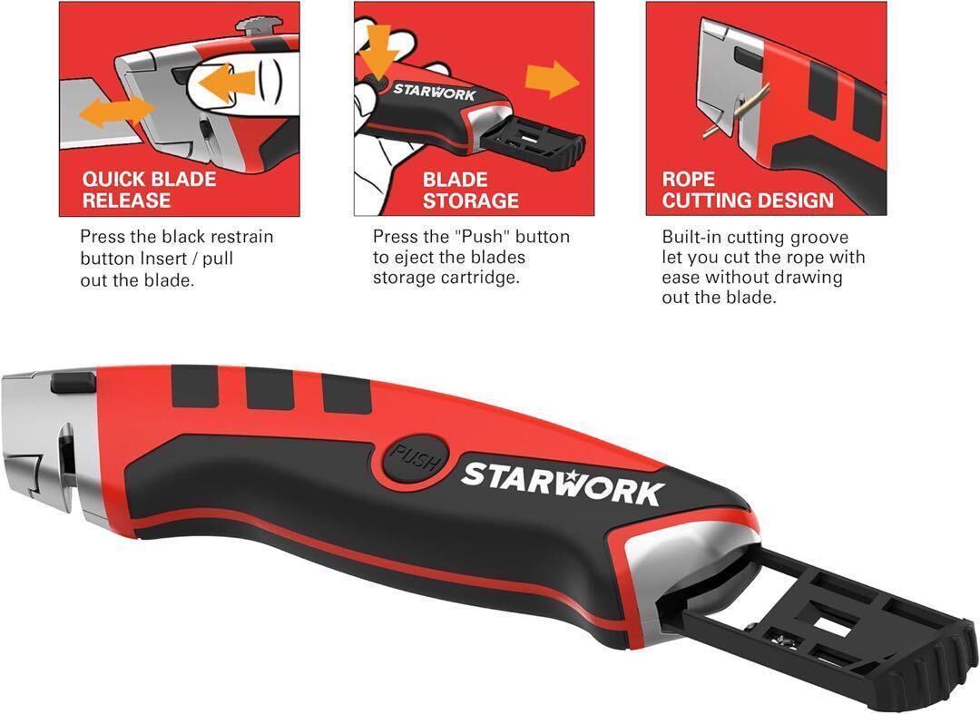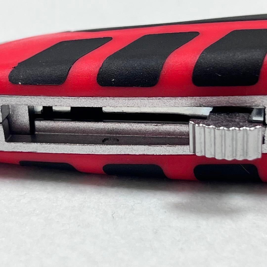 刃の部分3段階の長さを調整でき、正確な作業ができます。ブレードプッシュノブの滑り止め面により、ブレードをスムーズに押したり取り出したりすることが簡単にできます。