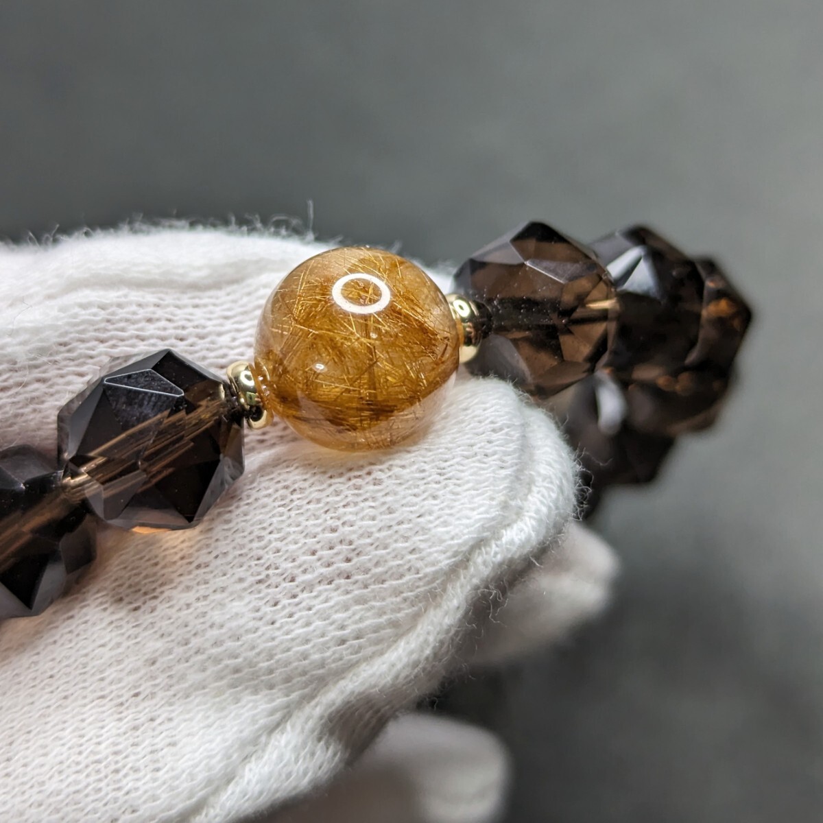 ブラウンルチルクォーツとスモーキークォーツスターカットのブレスレット