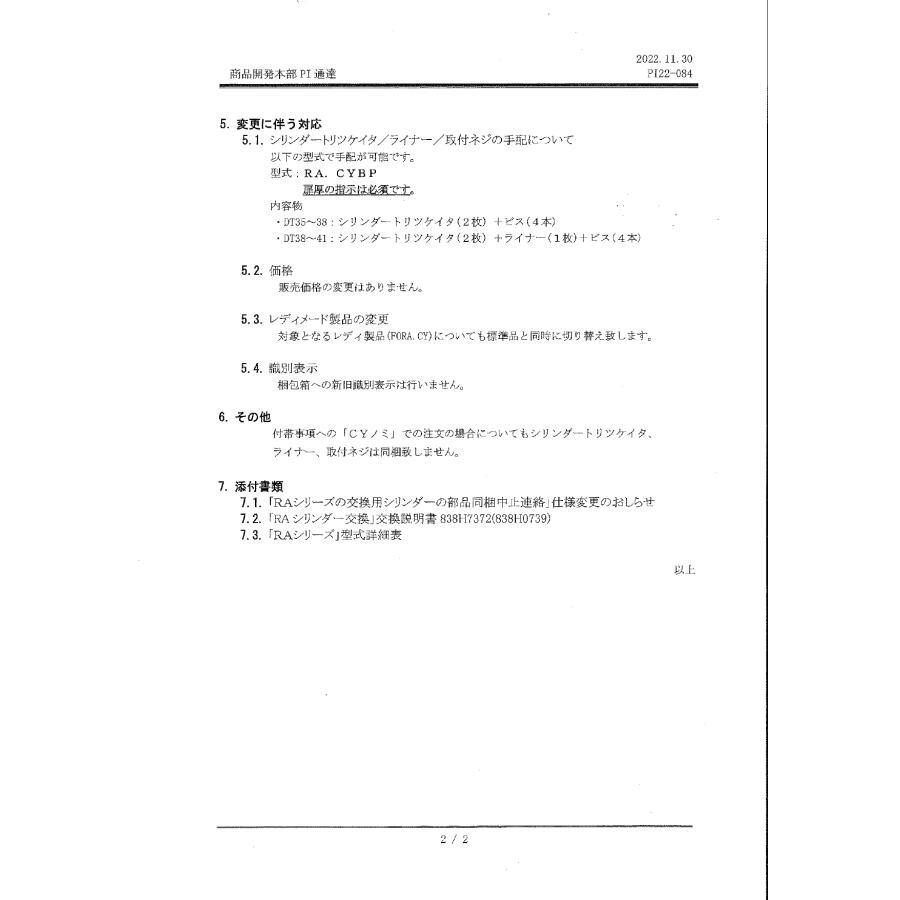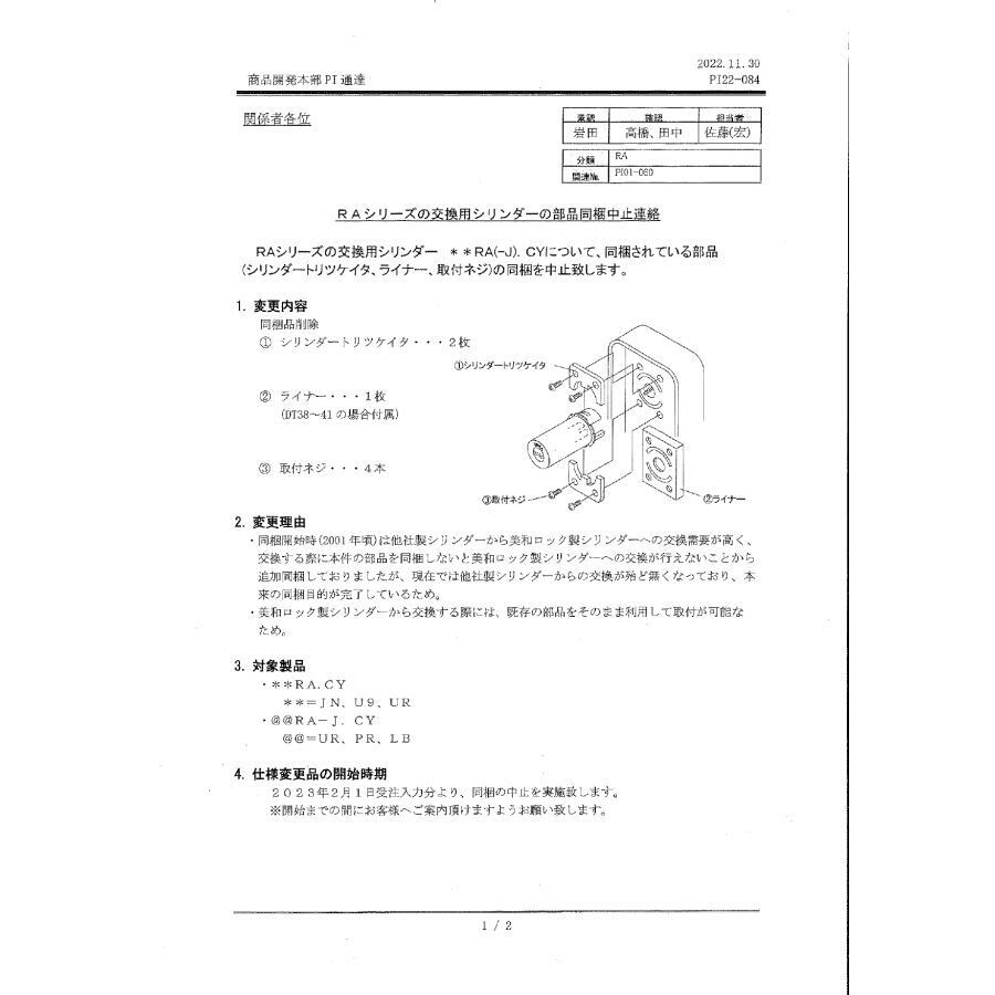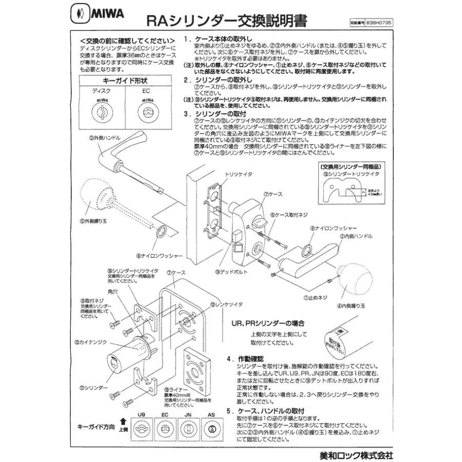 MIWA ミワ U9 RA(85RA)シリンダー 扉厚35mm〜38mm(美和ロック交換用シリンダーU9RA.CY)