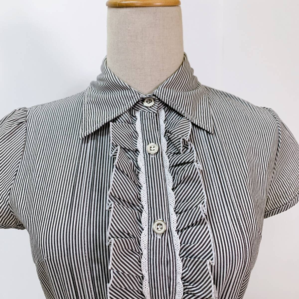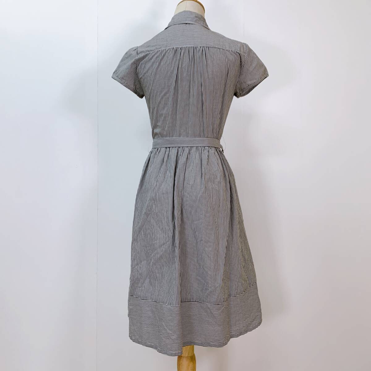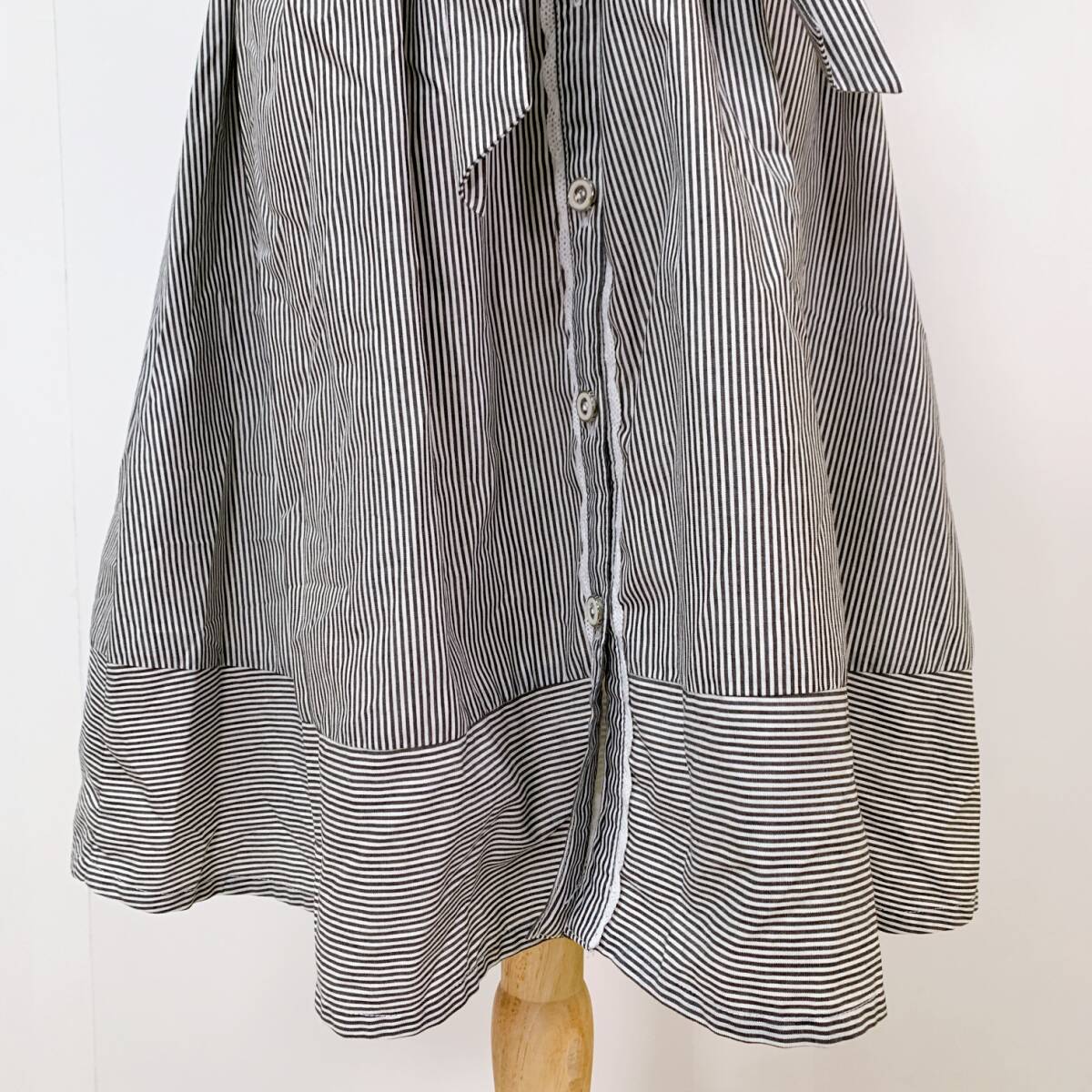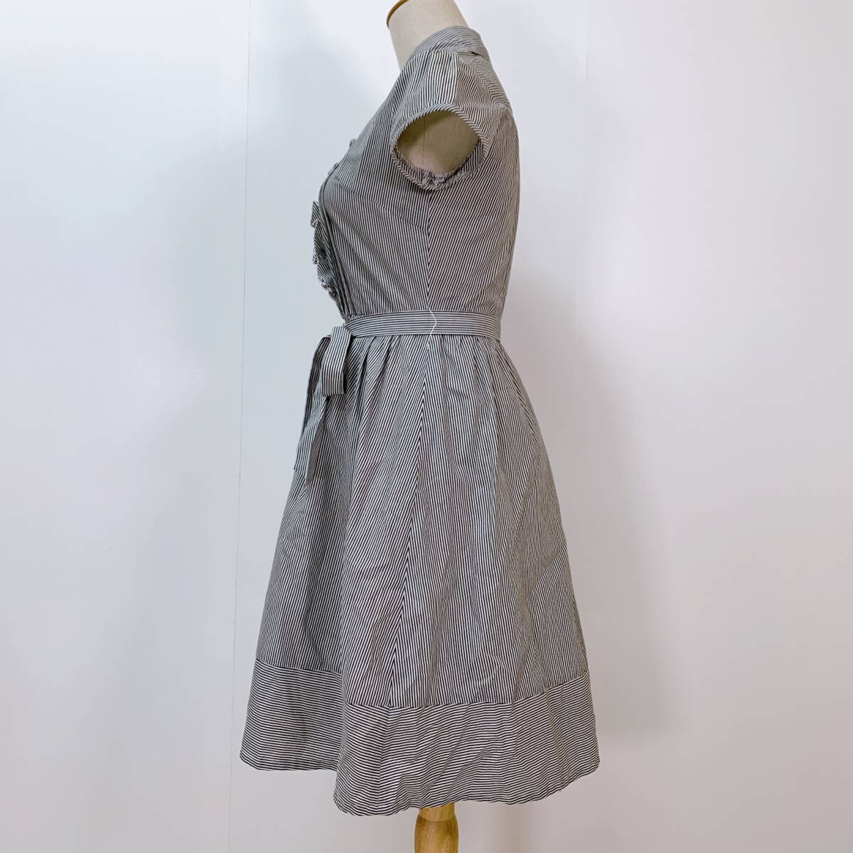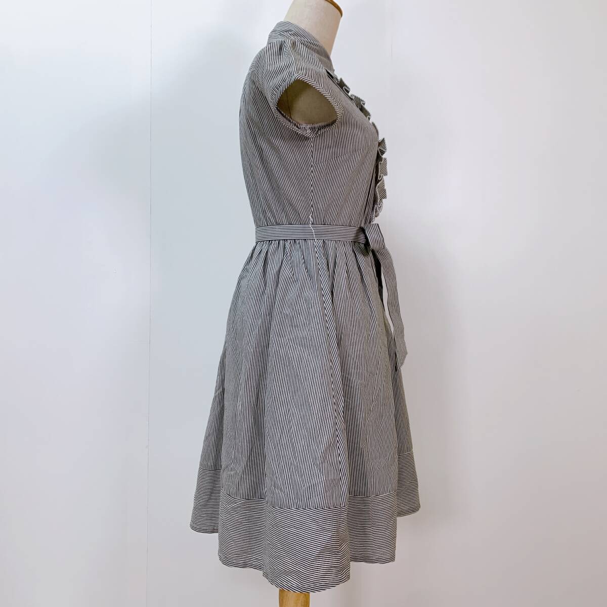 YH0593 美品 Della Luce レディース ストライプ柄 シャツワンピース 9ARサイズ フリル レース ウェストリボン かわいい 万能 USED 古着