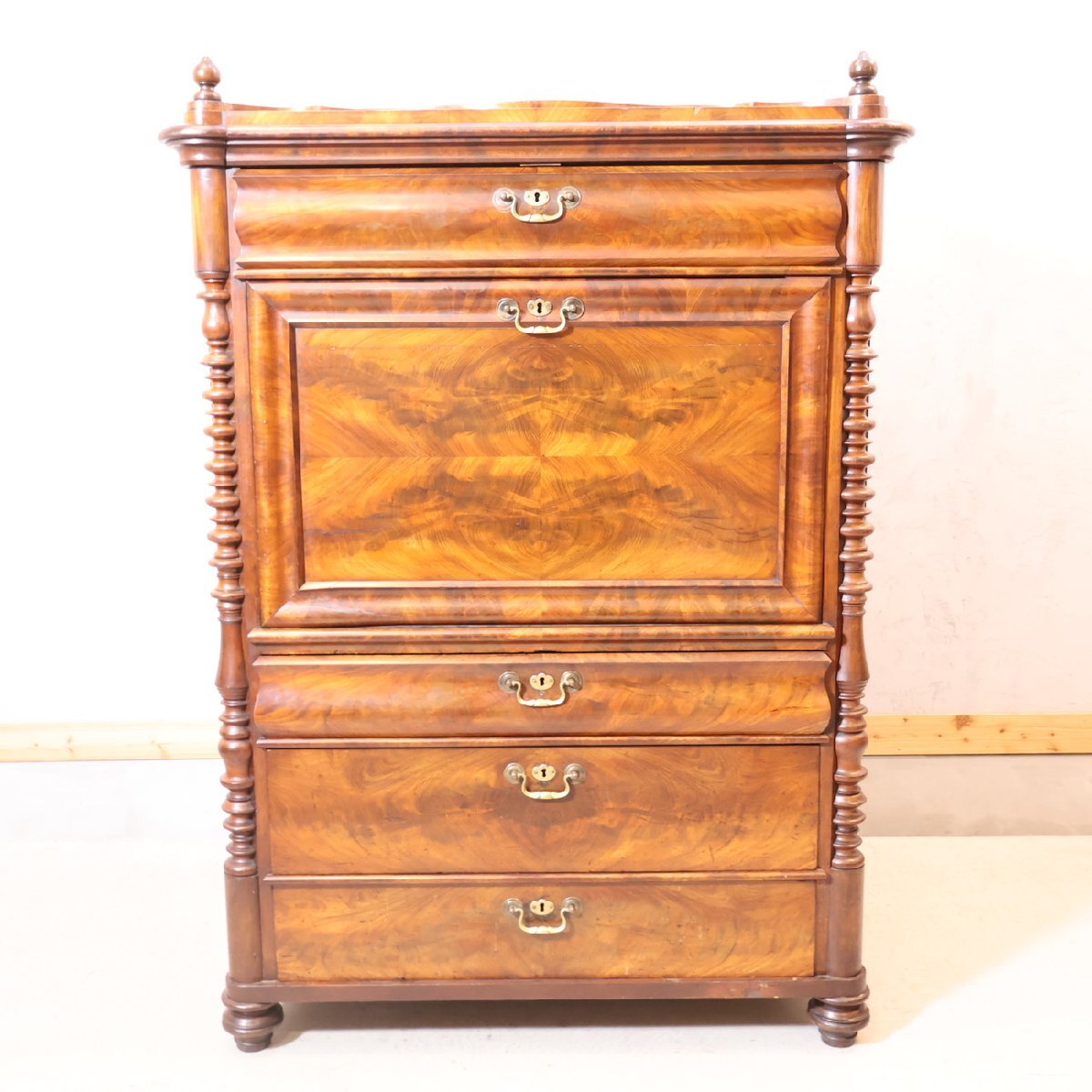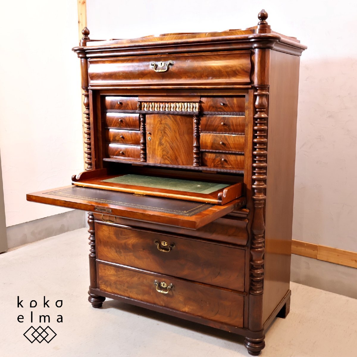 英国アンティーク マホガニー材 ライティングビューロー チェスト ライティングデスク ヴィンテージ イギリス クラシカル 書斎机 EF216