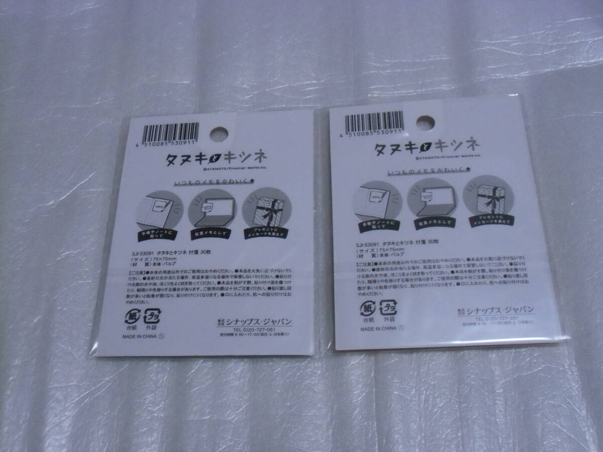 即決 タヌキとキツネ メモふせん 30枚 2セット 未使用 タヌキツ メモ 付箋
