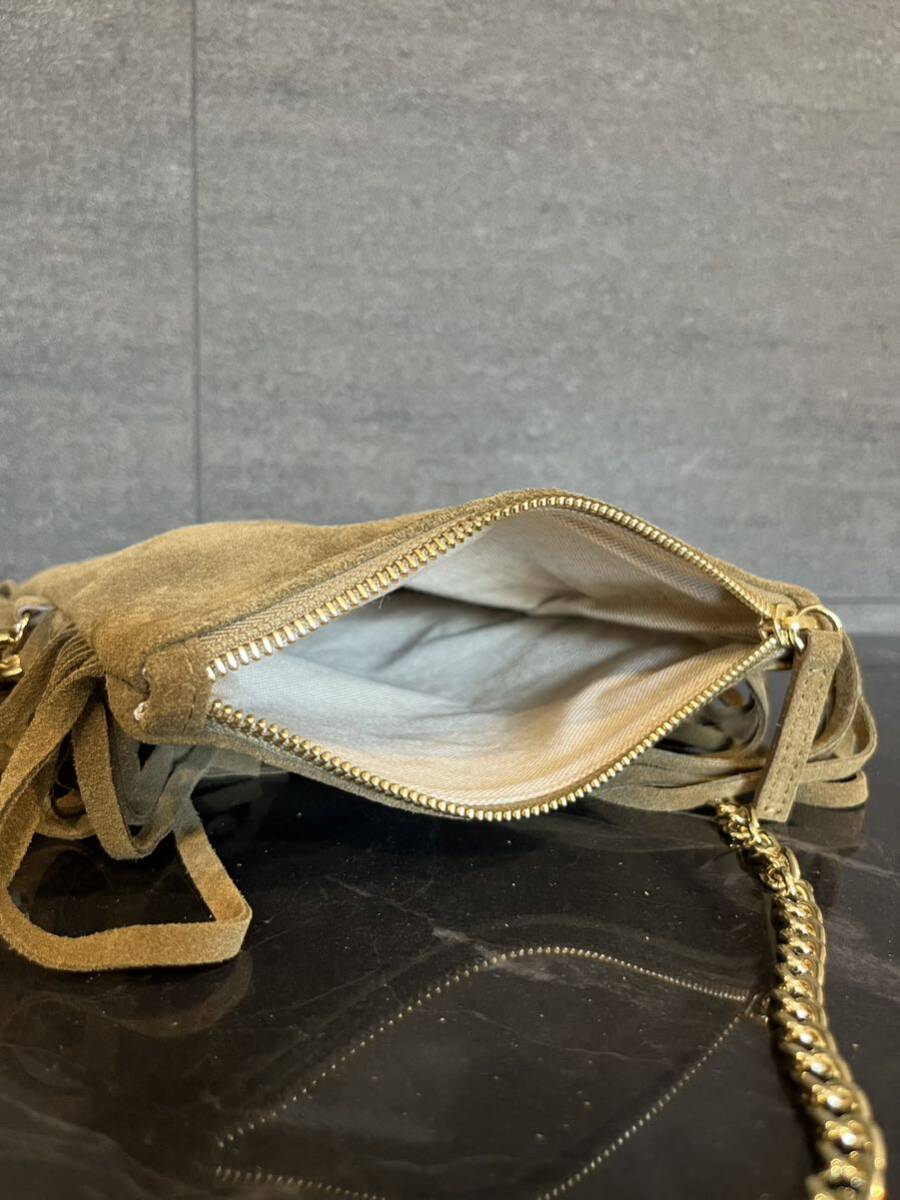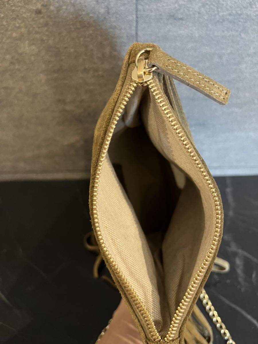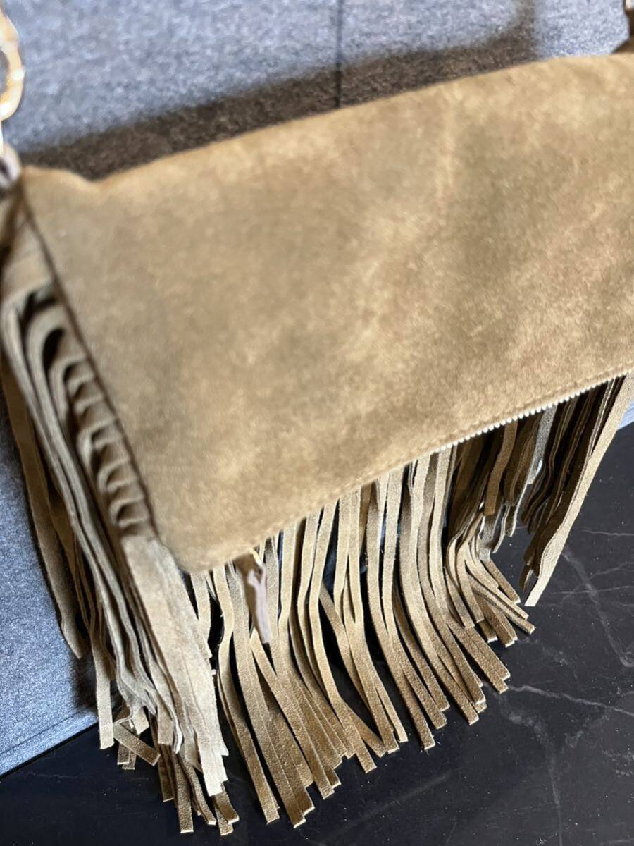 新品 イタリア製 LA SCAIA ラ スカイア レザーバッグ スエード ショルダーバッグ フリンジ ゴールドチェーン 肩掛け 定価30800 玉mc2931