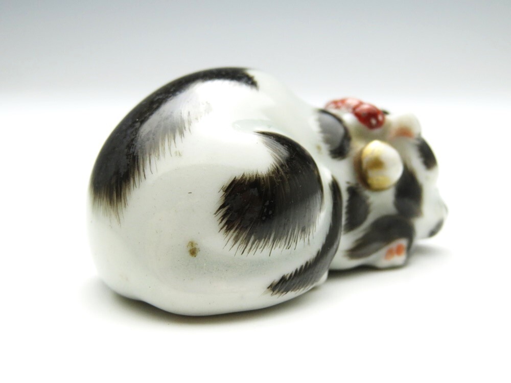 ●明治期 堤物 九谷焼 猫 根付になります。古い物ですが極力状態の良い作品を出品しておりますので是非ご覧ください。 【状態】 ●経年を考慮し状態はよいと思います。 【サイズ(約)】 ●高さ2.3㎝ 幅4.8㎝ (素人寸法ですので、若干の誤差はお許し下さい) 【領収書に関しまして】 領収書発行は致しておりません。 Yahoo!かんたん決済手続き完了時の確認画面をプリントアウトして領収書としてお使い下さい。 ※領収証として税務署に認められております。 ご了承のうえでのご参加をお願いいたします。 |