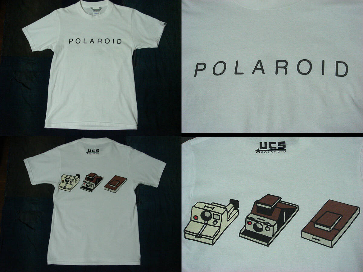 | 商品説明 | UCS×POLAROIDのTシャツです。 ボディはUSA製で、素材は綿100%です。 20年程前(2000~2003年頃)に、ポラロイドのイベントで購入したものと記憶しています。 破れや著しい汚れなど致命的なダメージはありません。20年以上前の白地の古着Tシャツとしては、状態は悪くないほうだと思います。 サイズの表記はS 寸法は概寸(cm)で、着丈67.5、身幅45.5、袖丈20.5程度です。 当方が巻尺にて簡単に計測した結果ですので、誤差はご容赦ください。 ビンテージTシャツにご理解のある方、よろしければどうぞ。 | |