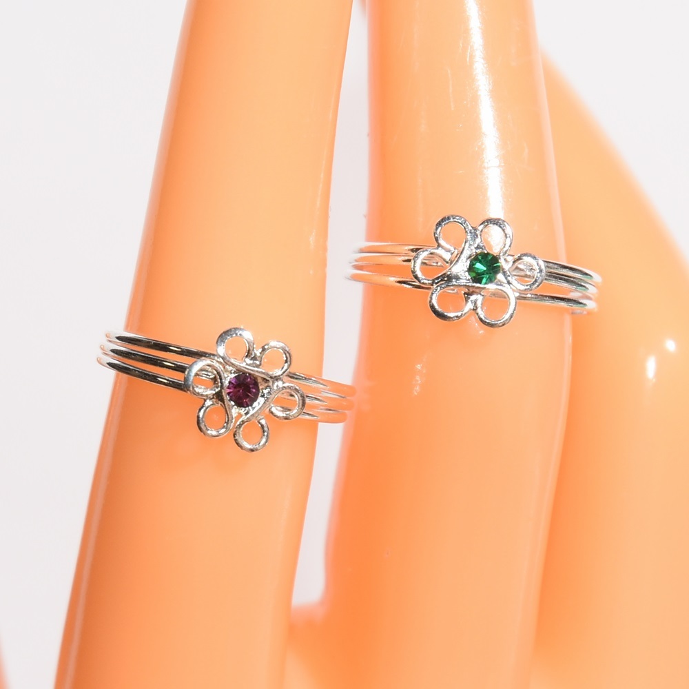 カラーストーンでデザインされた、足用指輪・トゥリング、2個セットです。