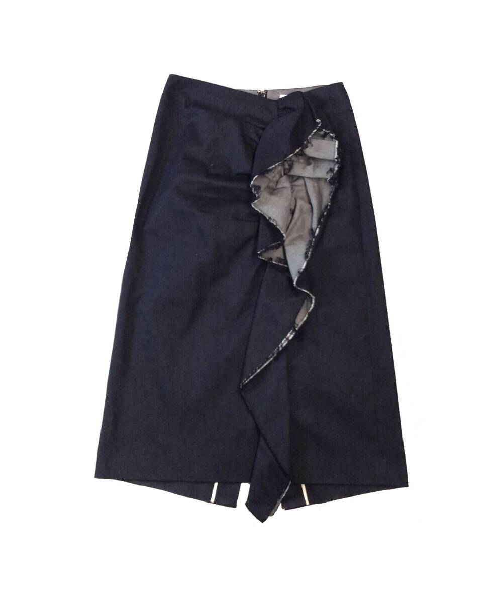 ルシェルブルー LE CIEL BLEU フリル デニムスカート スリット ネイビー コットン/ウール 34