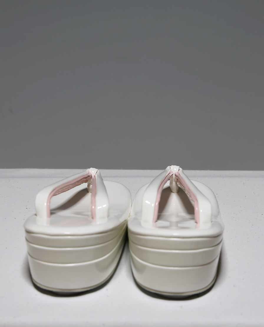 和装用草履単品 素材は合皮 サイズ 3L かかとの高さ約5.8cm 底面長さ約25.5cm 台座上部(足が触れる部分)傾斜に合わせて測って約26.3cm 和装用の草履の場合靴とは違いかかとから足が2cm位出ても問題はありません。また鼻緒は新しい時はきつめになっていますので、つま先がおくまで入らない場合もありますがこれも問題ありません。鼻緒は数回使用すると若干伸びて楽になります 収納用の箱は若干傷みがある場合もあります。 | |
