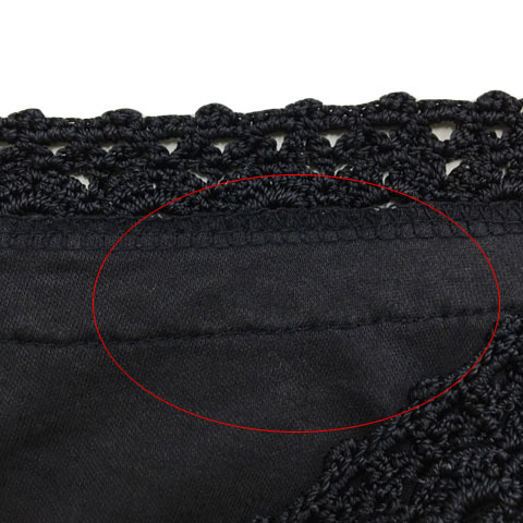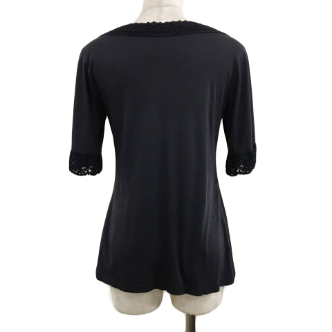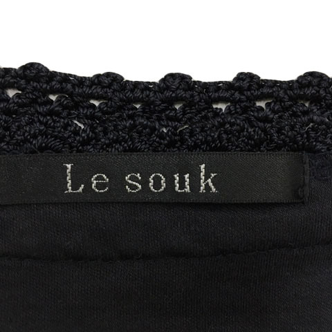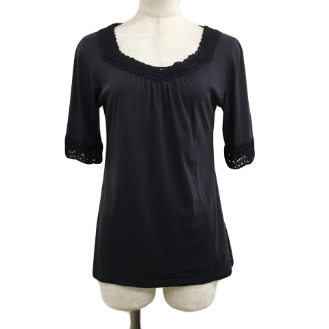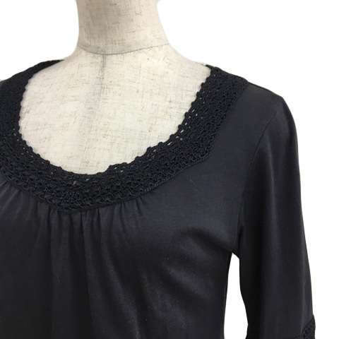 ルスーク Le souk カットソー ブラウス プルオーバー Uネック ギャザー 鍵編み 無地 五分袖 36 黒 ブラック レディース