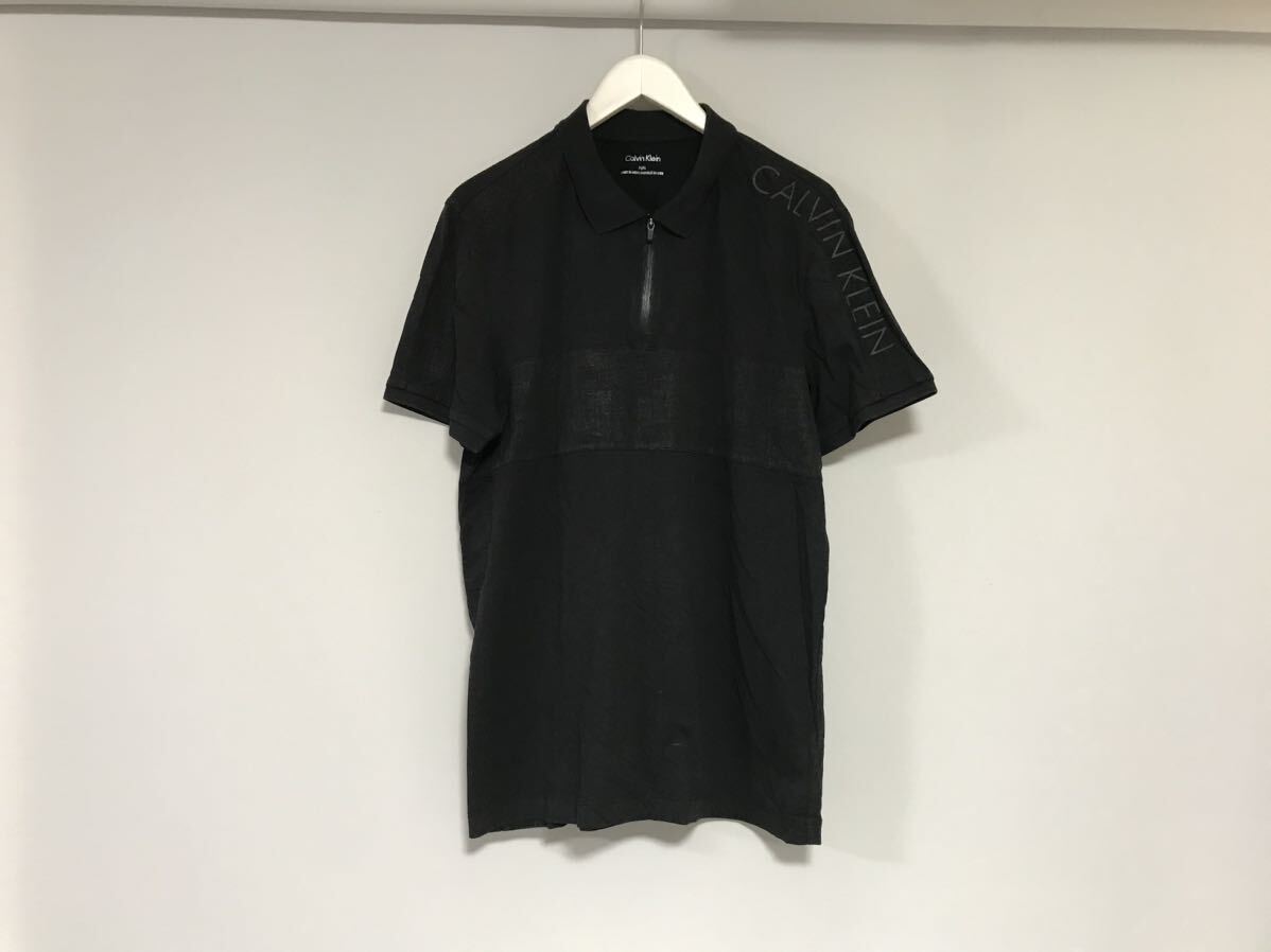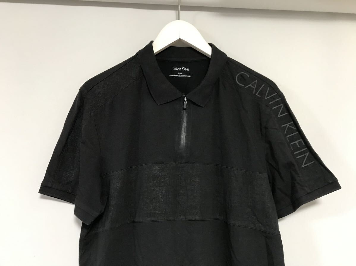 商品名:本物カルバンクラインCalvinKleinコットンハーフジップ半袖ポロシャツメンズサーフアメカジゴルフビジネススーツ黒ブラックMインド製