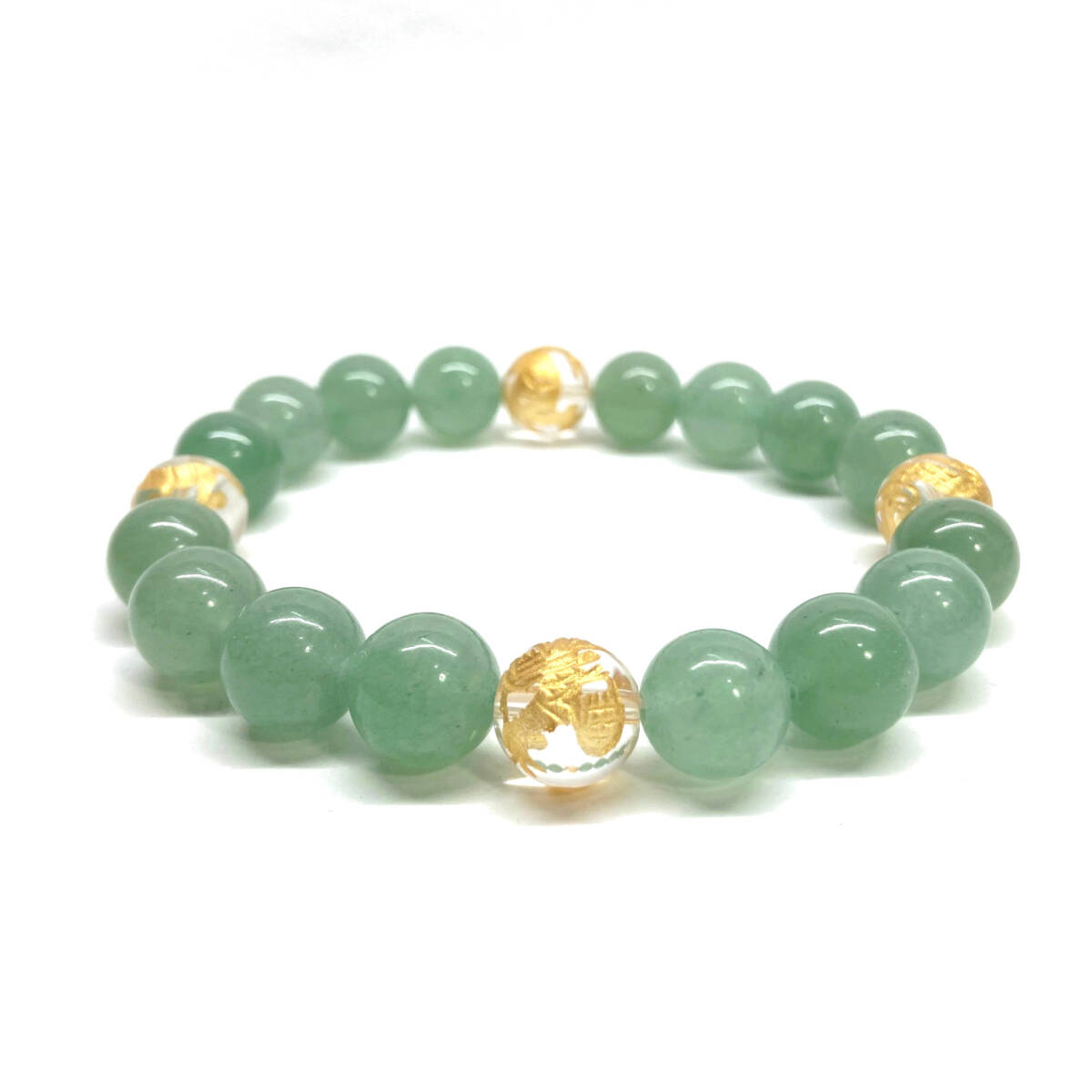 10mm 四神獣金彫水晶×アベンチュリン パワーストーン ブレスレット天然石 運気上昇 開運 金運 恋愛運 お守り 青龍 白虎 玄武 朱雀