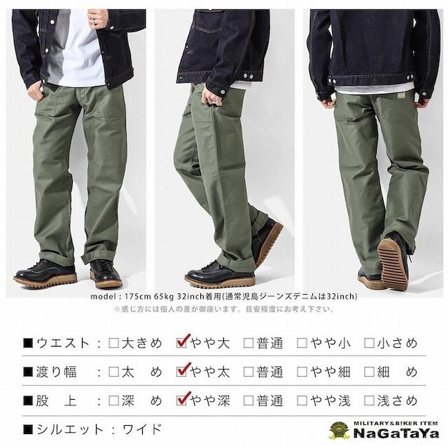 ● サイズ :36インチ・ウエスト-91cm 渡り幅-34.5cm 裾幅-25cm 前股上-30.5cm 股下-82cm