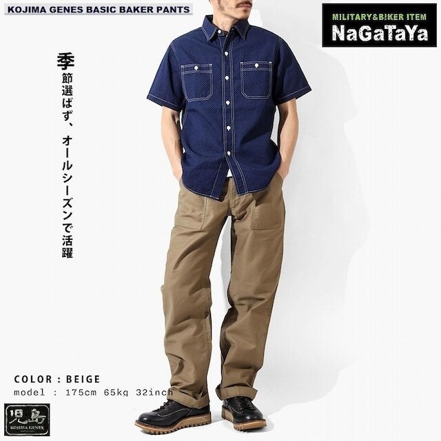 児島ジーンズ KOJIMA GENES RNB1201 ベーシック ベイカーパンツ ベージュ 36インチ バックサテン生地 MADE IN JAPAN 日本製