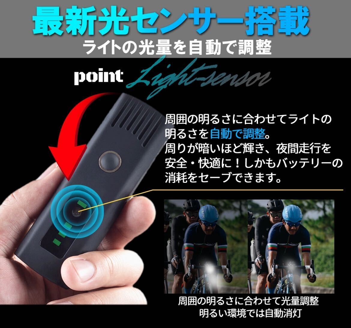 高性能の自動明暗センサーを搭載!周囲の明るさに合わせて自動点灯→調光→消灯するオートモードを含めた4つの点灯モードが使える、スペシャルな自転車ライトです