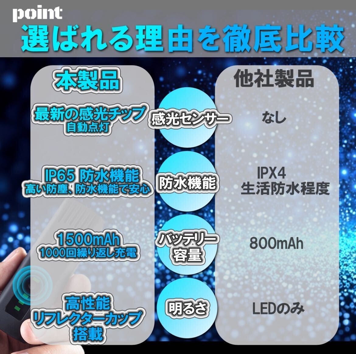 大容量1500mAhのバッテリーで、いつもの充電ストレスから解放!高輝度LEDランプビーズが40M先を照らし、4つのモードでしっかりサポートします。しかも、急な雨の日でも安心のIPX4防水設計で安定のパフォーマンスを発揮。