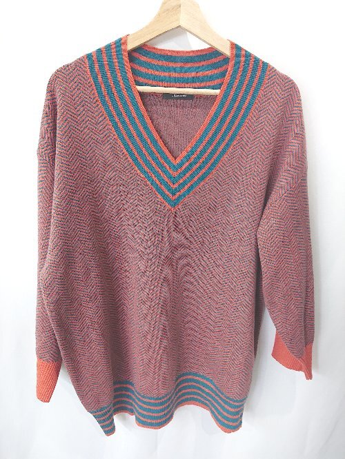 ◇ JEANASIS ジーナシス 総柄 長袖 ニット サイズF オレンジ系 レディース E