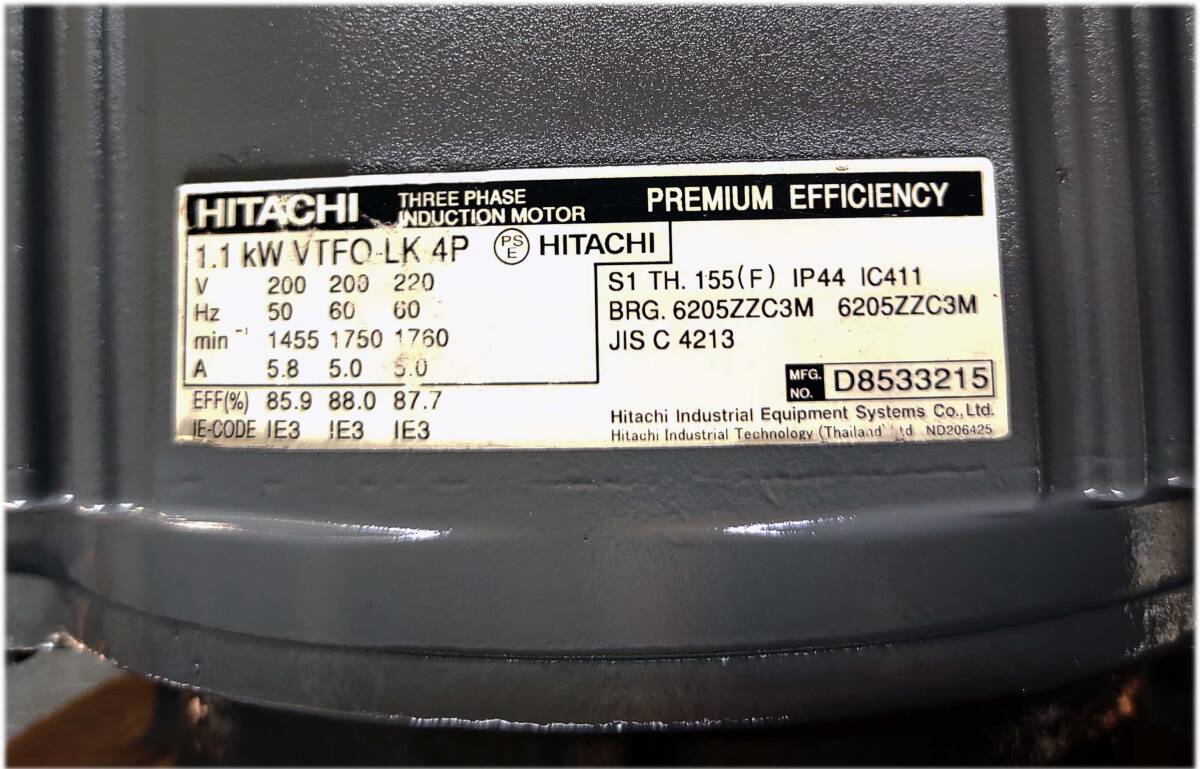 日立 三相誘導モータ 全閉型 立て型フランジ 1.1kW VTFO-LK 4P 中古品