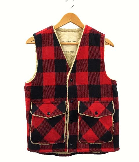 デニム&サプライ ラルフローレン DENIM & SUPPLY RALPH LAUREN ボア ベスト バッファローチェック 赤 黒 XS メンズ