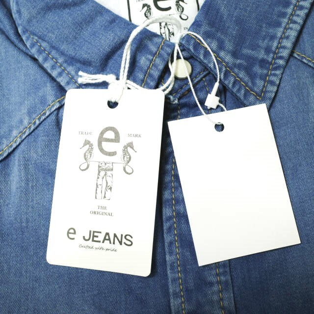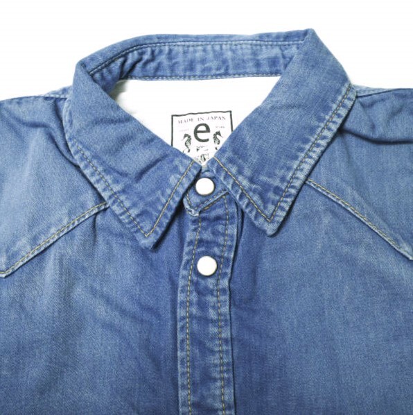 新品 e JEANS イージーンズ 日本製 岡山児島 デニムウエスタンシャツ e105-001 S Mid Blue 長袖 インディゴ 定価31,900円 トップス g17714