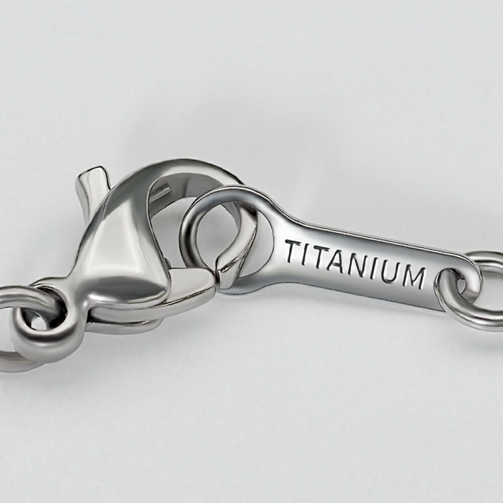 | チタンについて 優れた特徴を持つチタンは様々な用途に使用されている現代社会に欠かせない重要な素材の1つです。金属アレルギーを起こす事が殆ど無い高い生体適合性を持つ事から、人工骨として体内で使用される程とても人体に優しい特徴を持ちます。また、錆(さび)や海水・温泉・薬品等に腐食されにくく、非常に軽量ながら高い強度を持ちます。当店ではメンズ(男性用)・レディース(女性用)向けにチタンアクセサリー(主にチェーン類)を豊富に取り揃えております、宜しければ是非他の商品もご覧になって下さい。 |