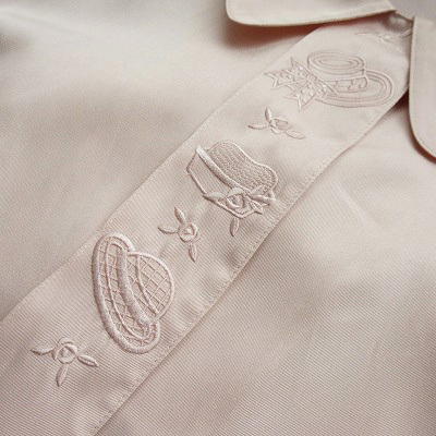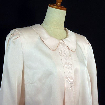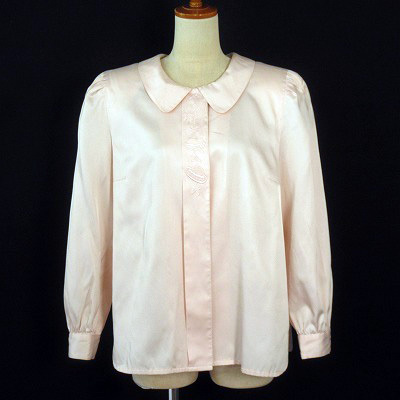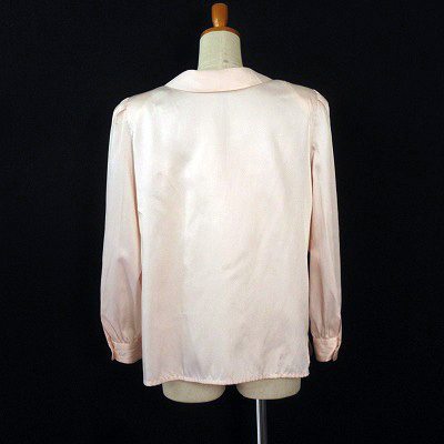 レリアン Leilian レトロ ヴィンテージ 日本製 ブラウス 刺繍 パフスリーブ サテン シルク混 13 ピンク レディース