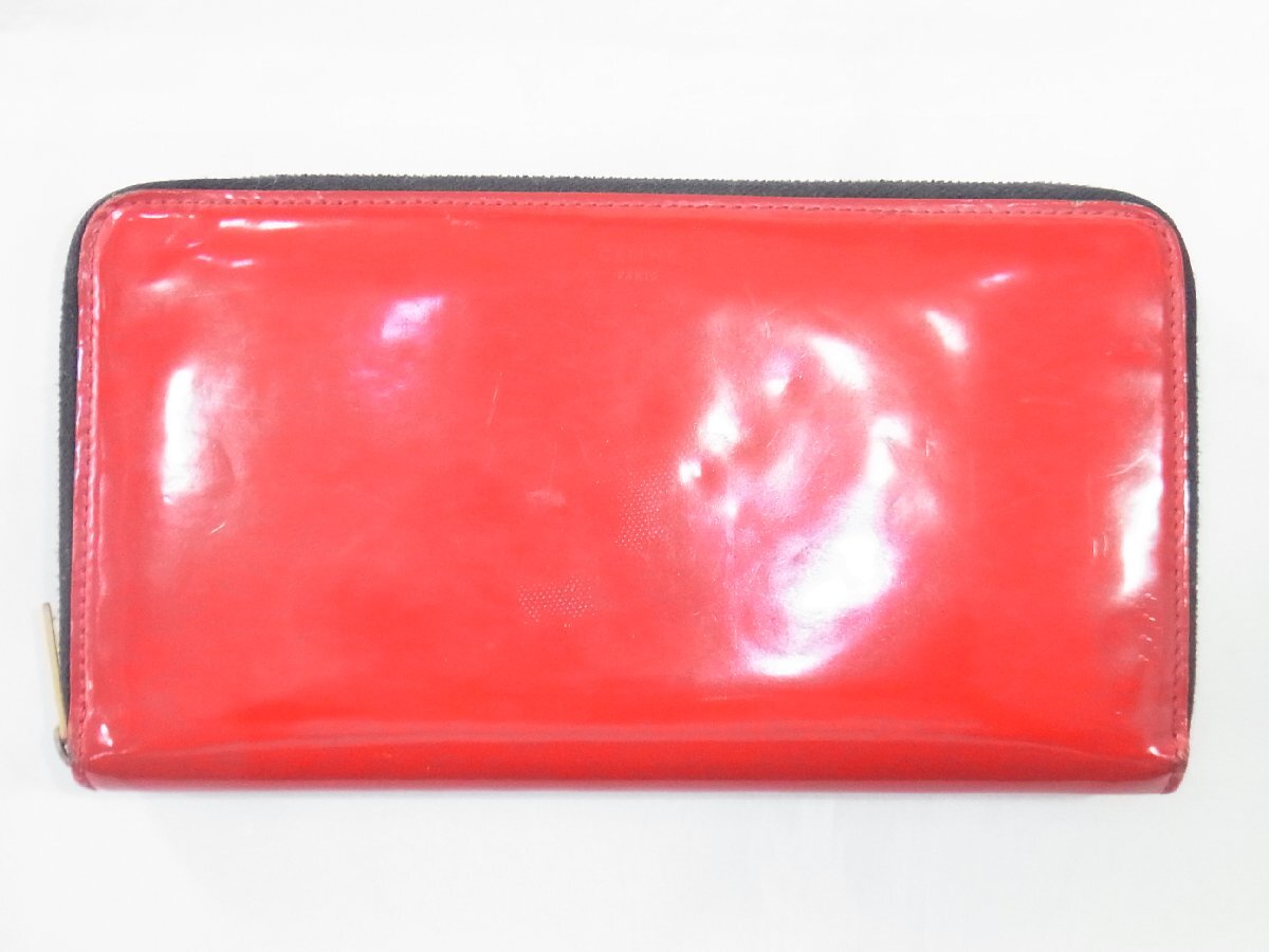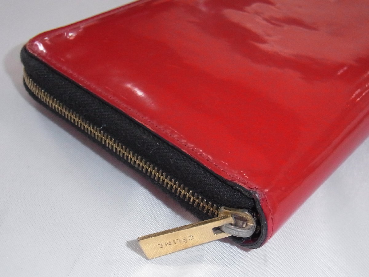 セリーヌ CELINE ラウンドファスナー 長財布 パテント レザー 赤 中古品 | |