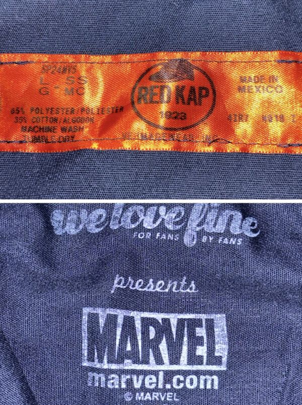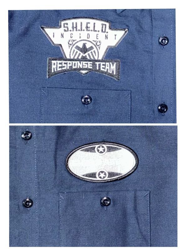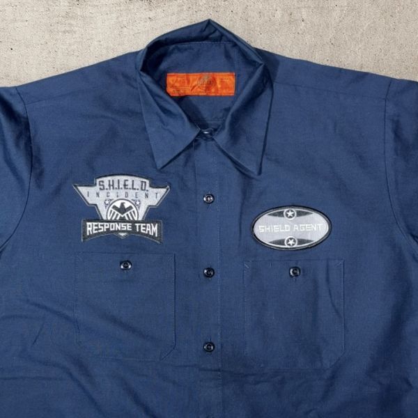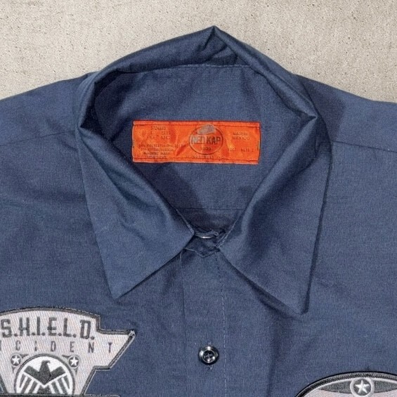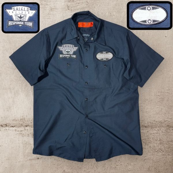 ★超レア★MAVELアベンジャーズ★RED KAP★S.H.I.E.L.D RESPONSE TEAM刺繍ワッペン★半袖ワークシャツ sizeLスナップボタン(上部) レッドキャップ 古着 クリーニング プレス済み w1451