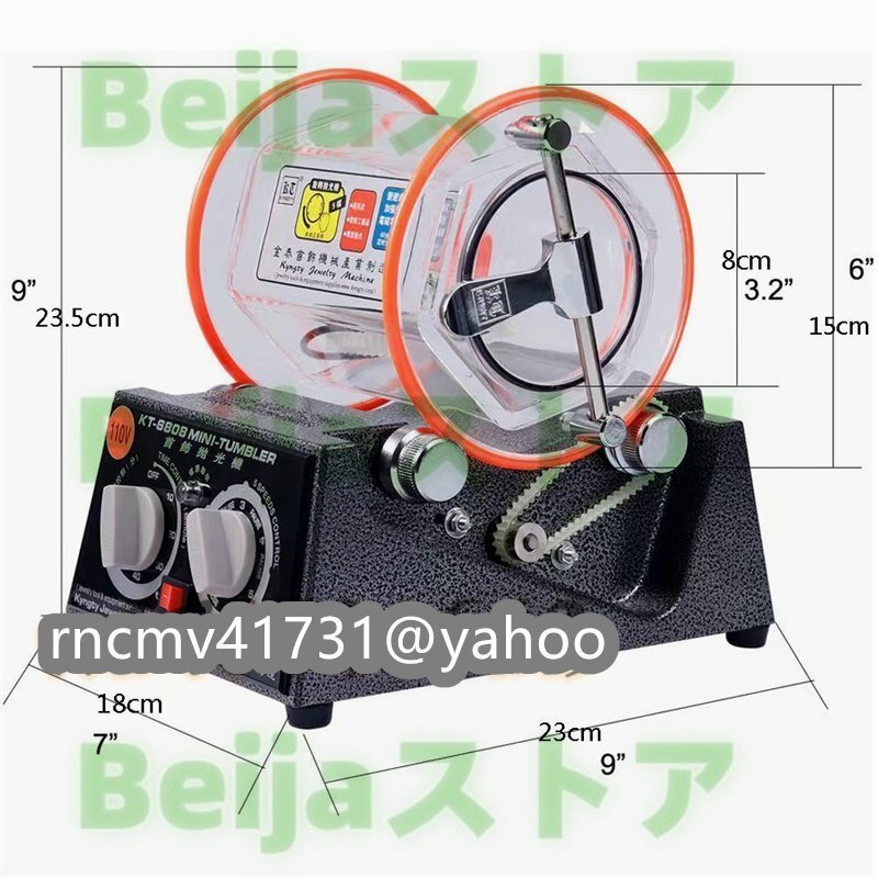 ・【使い方】?研磨桶に約1/2の水と付属の研磨ボールを入れ; ?研磨する必要があるアクセサリーを研磨桶に入れ、蓋をしっかり閉めて; ?研磨桶が機械の上に置きます;?電源を入れ、時間とスピードを設定してください;?研磨開始;