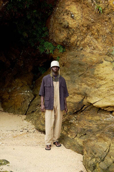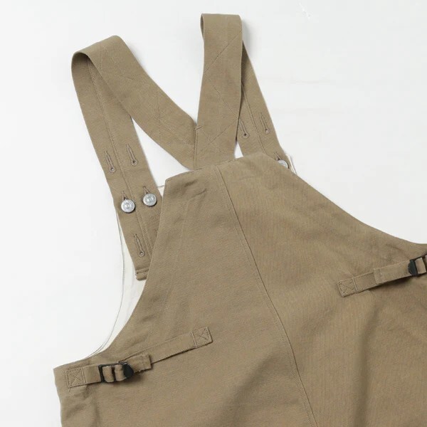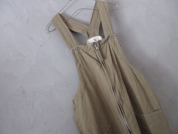 シルエットが特徴的なフロントジップ・ミリタリー・オーバーオールです。