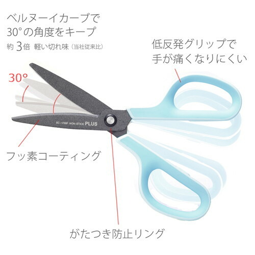 汚れ・サビに強く、フッ素樹脂をコーティングしているので、粘着テープ・のりなどがベタつきにくい。