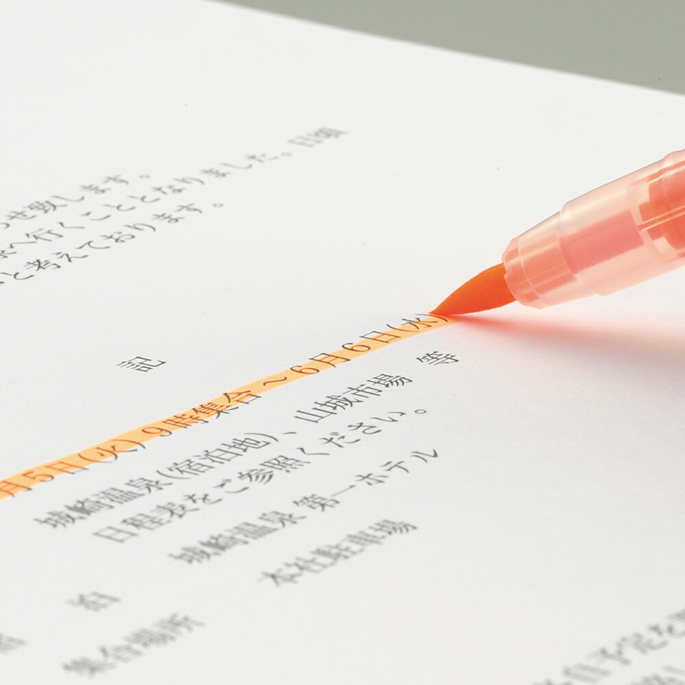 サッ! と引ける蛍光マーカー。 筆ぺんタイプだから… 引きたい所だけサッ! 思い切り、きれいにサッ! 文字も書ける! チェックもサッ! サッ! サッ!