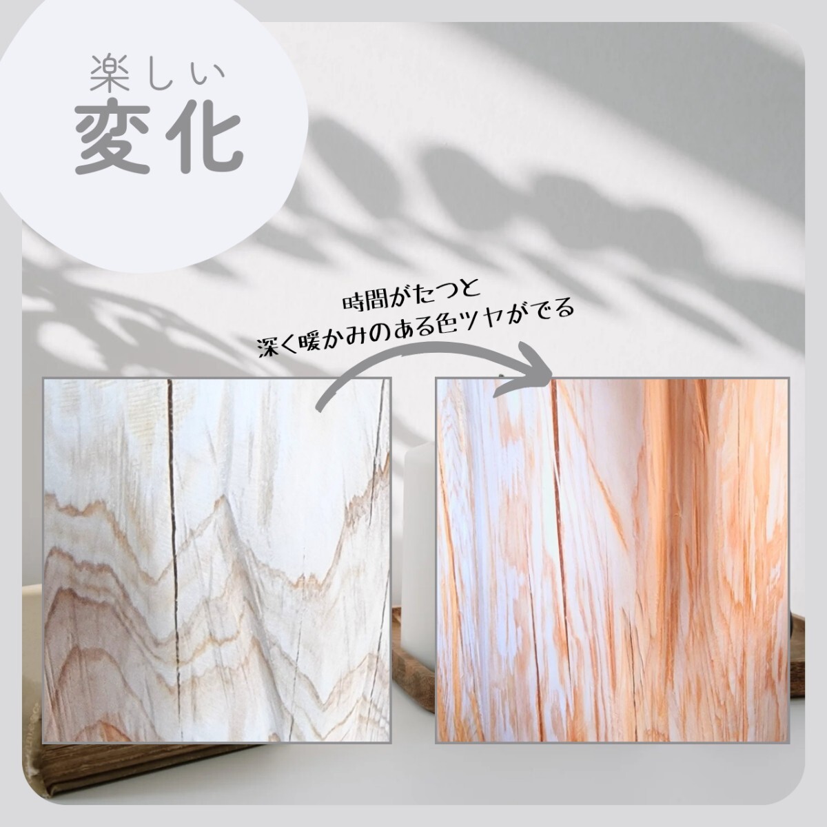 東濃ひのきは国産高級ブランドです。他地域のひのきと比べて香り高く、きめ細やかなな肌質が特徴的です。天然アロマの香りは部屋中に広がります。