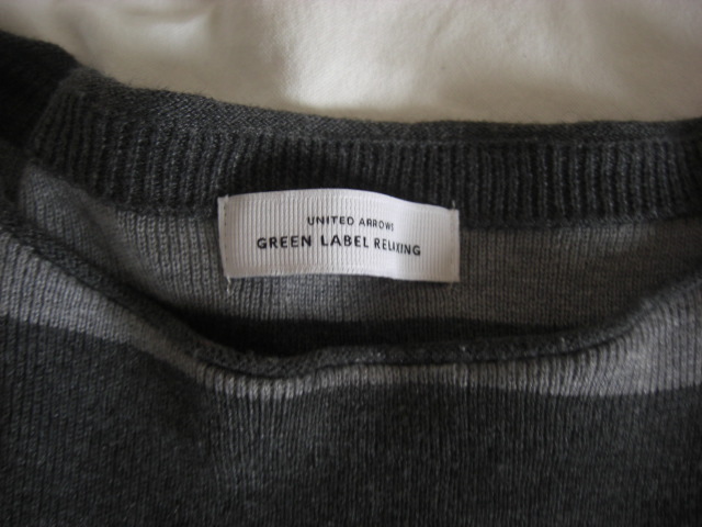 中古グリーンレーベルリラクシング ボーダーニット グレイ