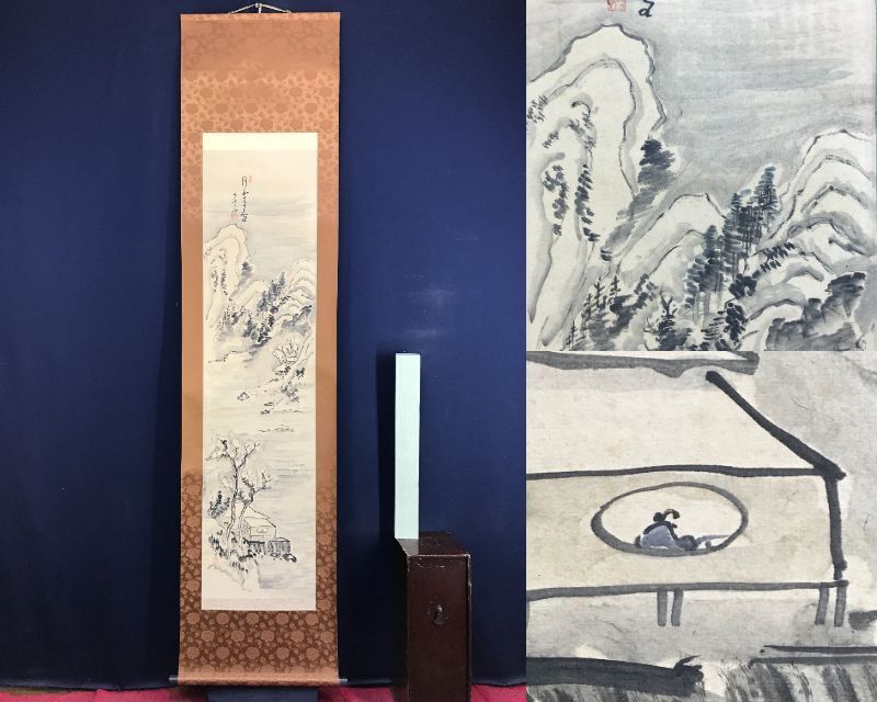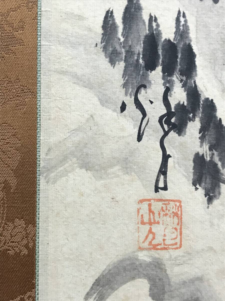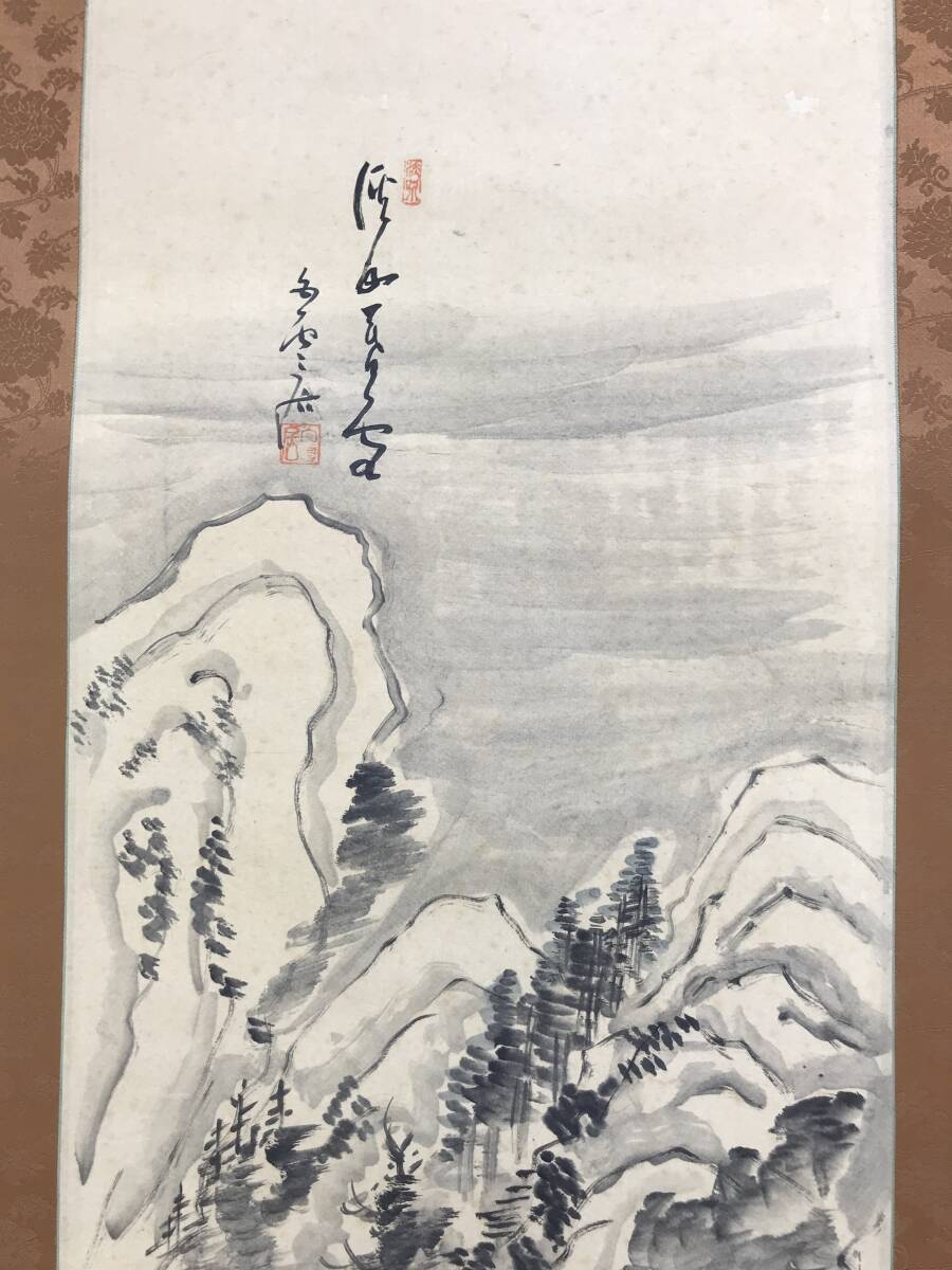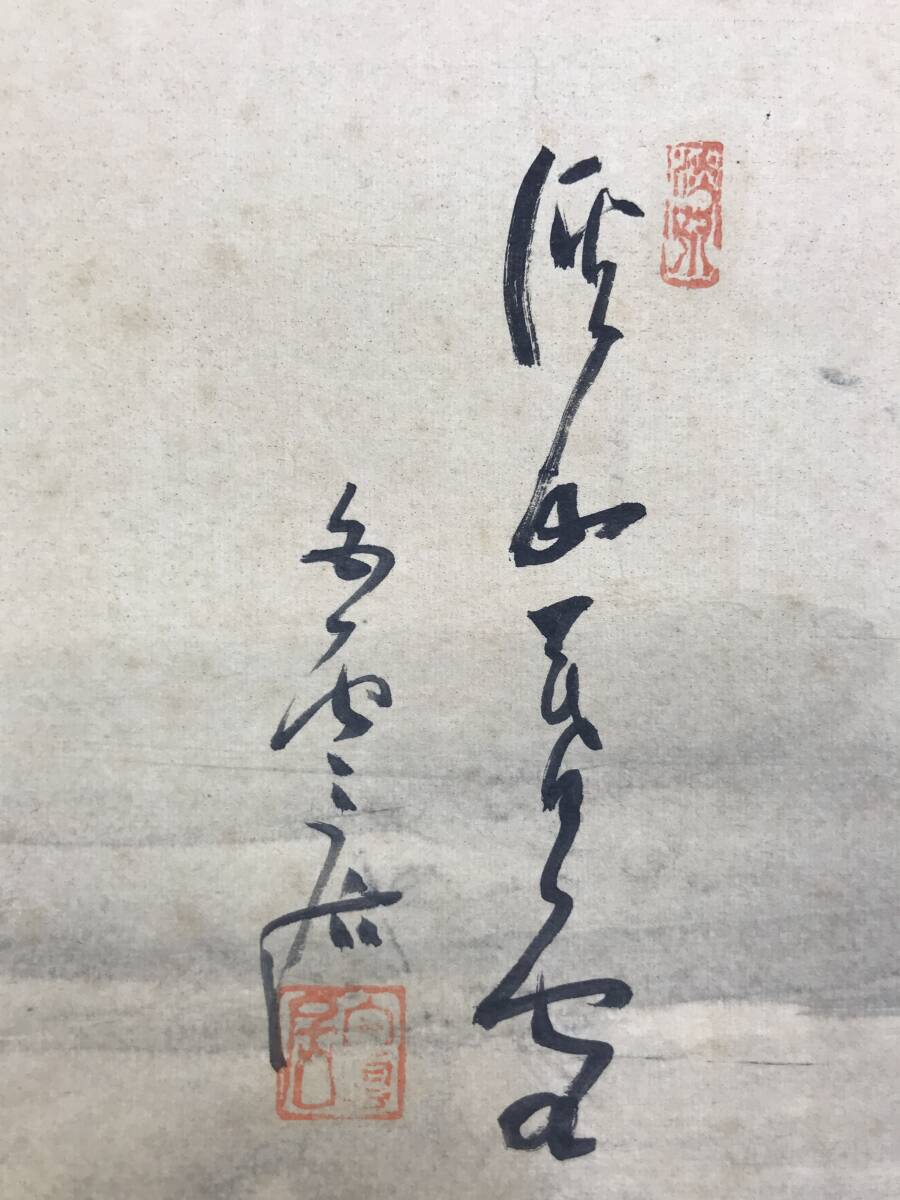 【作品状態】 本紙は紙本肉筆です。本紙は薄汚れ、全体に糊シミあります。表装は良好です。
