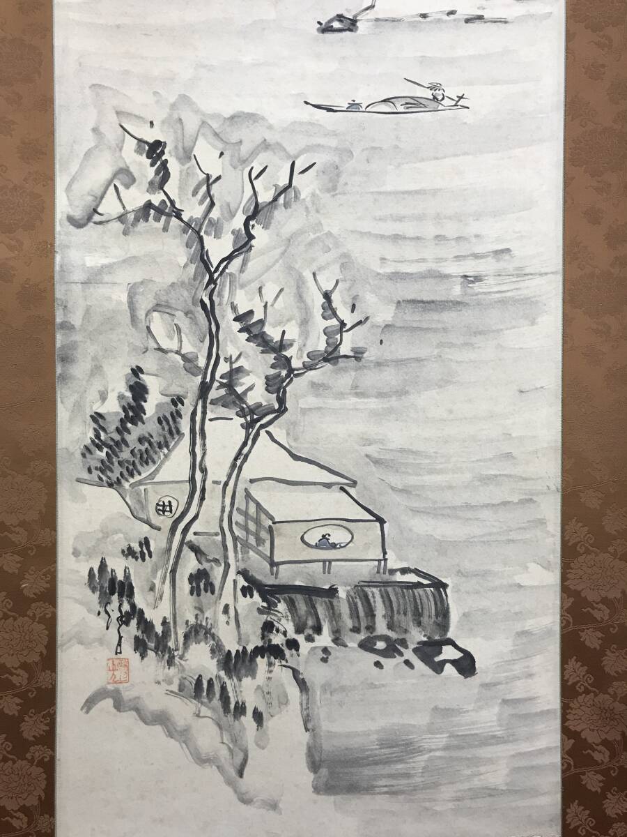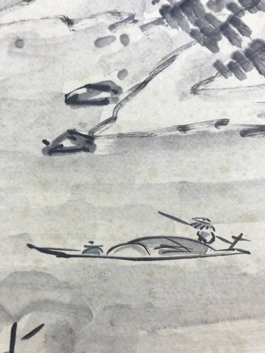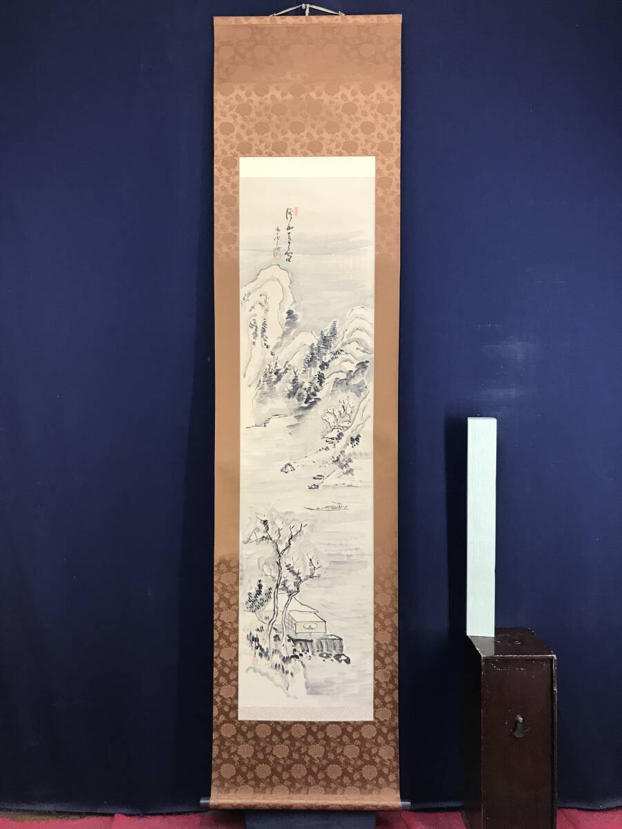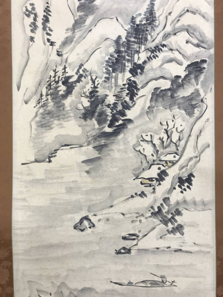 真作/白雲/雪景山水人物図/山水図/舟人物図/掛軸☆宝船☆AG-158