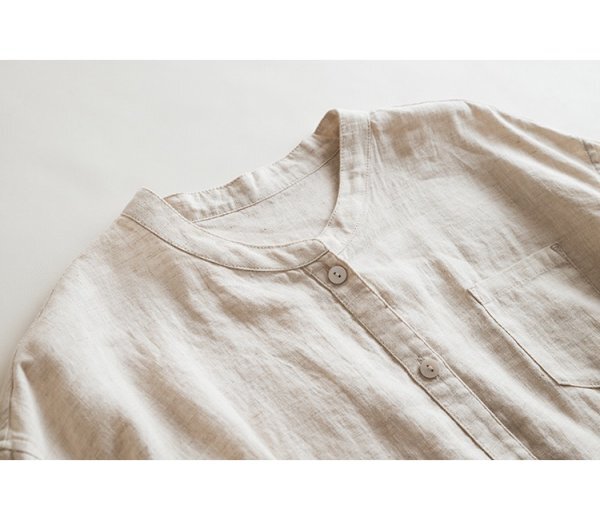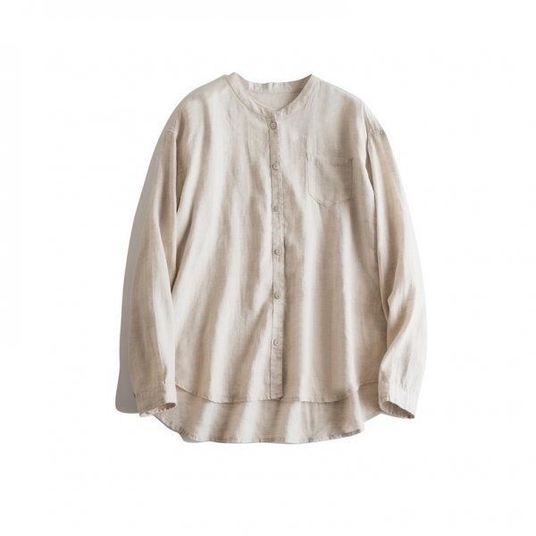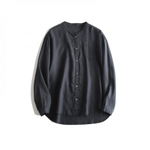 m2407カーディガン 前開け 羽織物 スタンド襟 ワイシャツ ゆったり 麻100% リネン RINEN オシャレ フリーサイズ ナチュラル 黒灰色