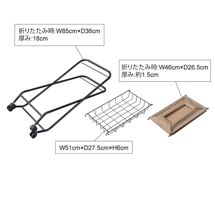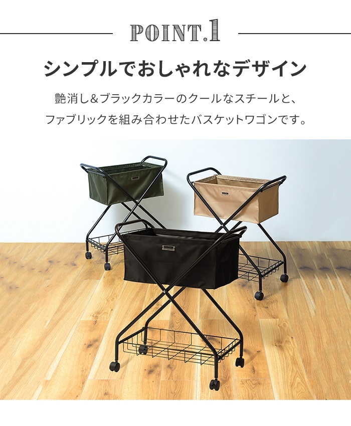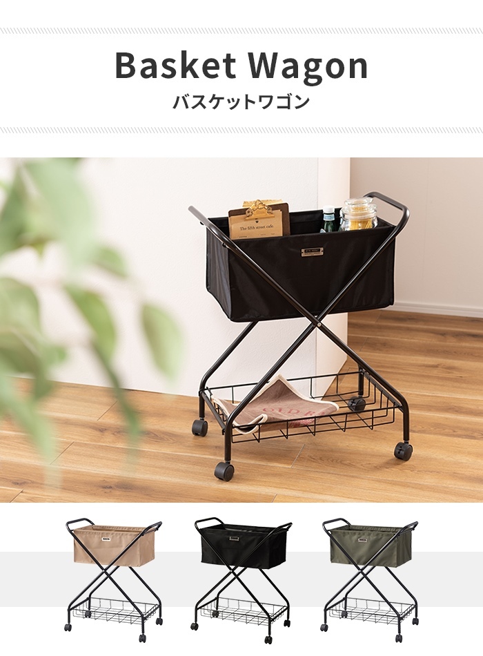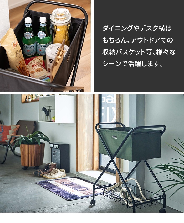 | 艶消し&ブラックカラーのクールなスチールと、ファブリックを組み合わせたバスケットワゴン。 折りたたみ可能で持ち運びも簡単。 ダイニングやデスク横はもちろん、アウトドアでの収納バスケット等さまざまなシーンで活躍します。 |
