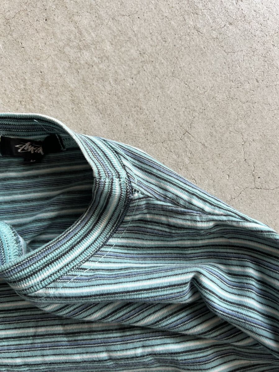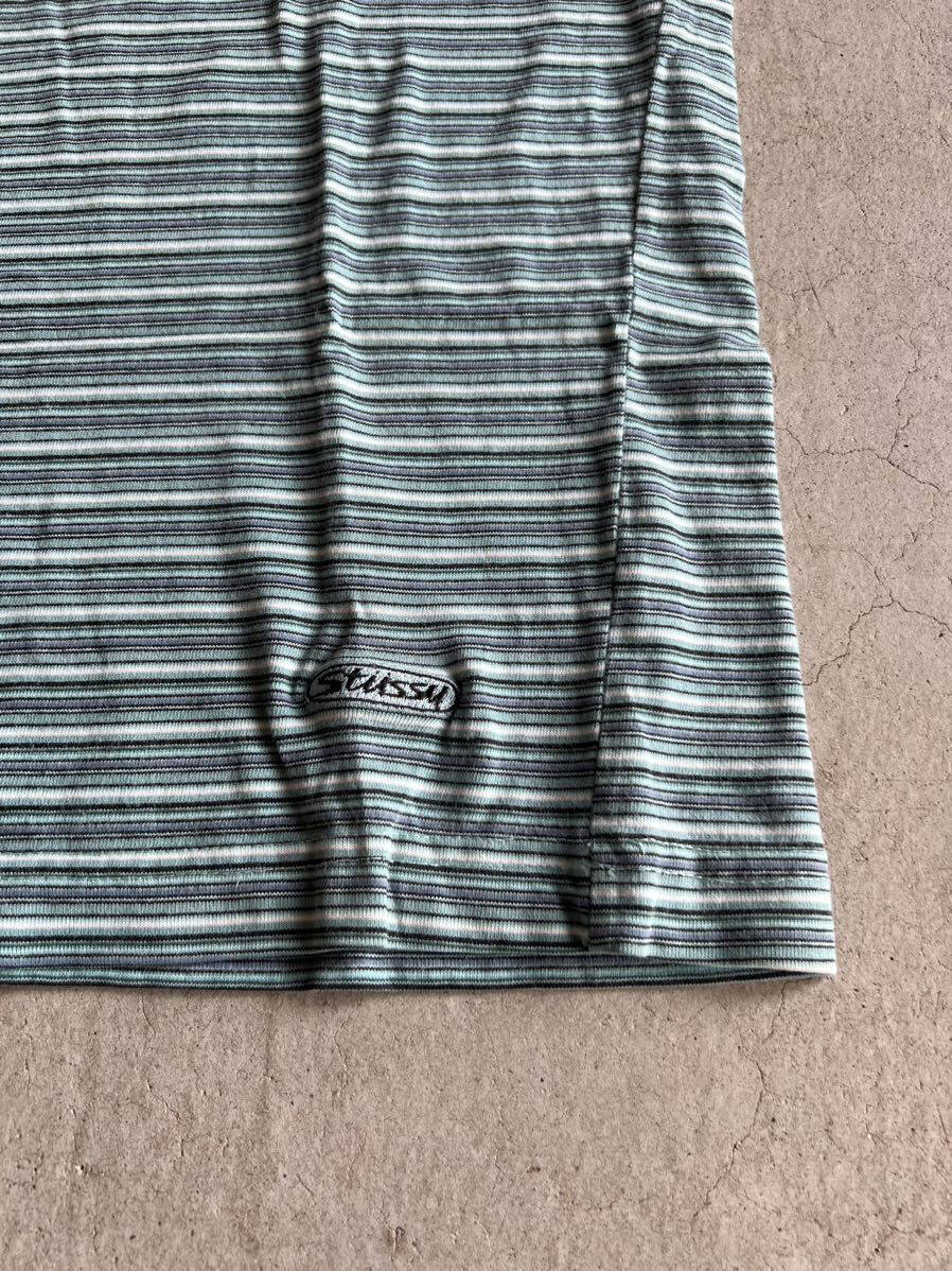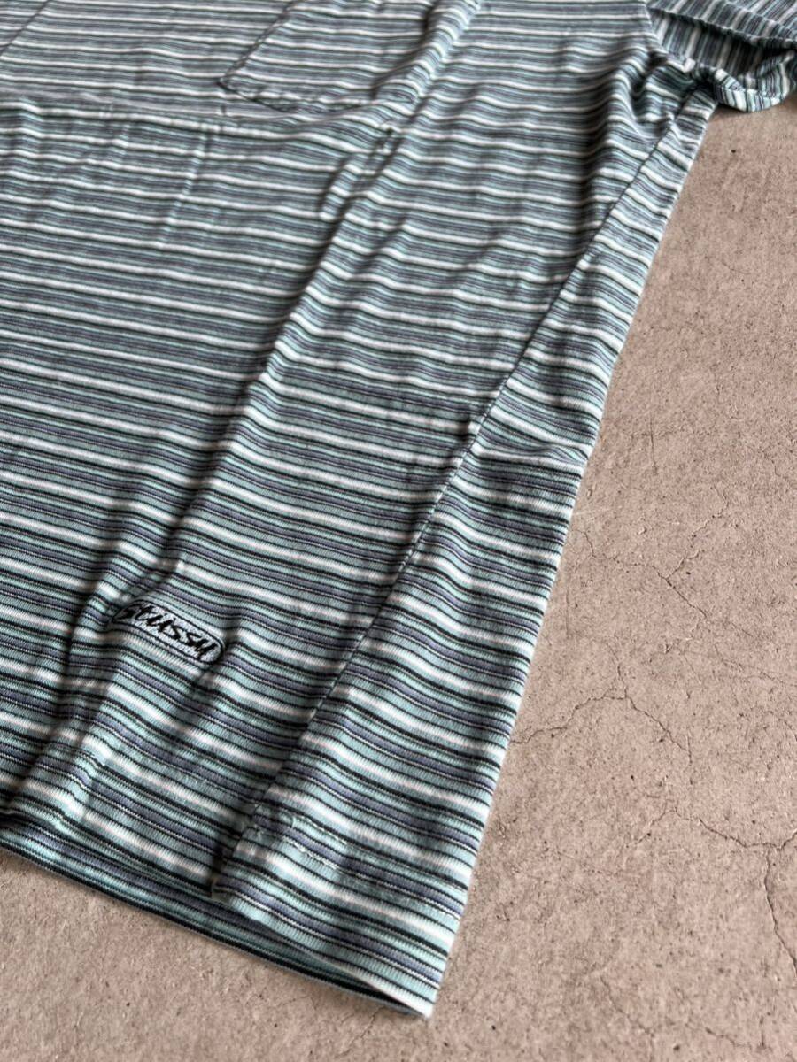 レア柄!80’s 初期 オールドステューシー OLD STUSSY 黒タグ ボーダー柄 L ポケT