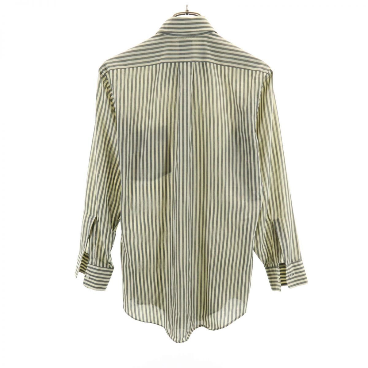 | 詳細 | 70年代製になります。サイズや素材不明です。実寸を参考にお願いいたします。全体的に色褪せ、首周りに薄い黄ばみ、両袖や他所々に傷、左袖に破れ、右袖口に擦れ汚れ、右袖口や前一番上ボタンホールにほつれあり。左胸ポケットにほつれ・リペア・洗濯の際のゴミの付着あり。左裾に素材のようなプリントあり。古着にご理解の上ご購入をお願いいたします。 |