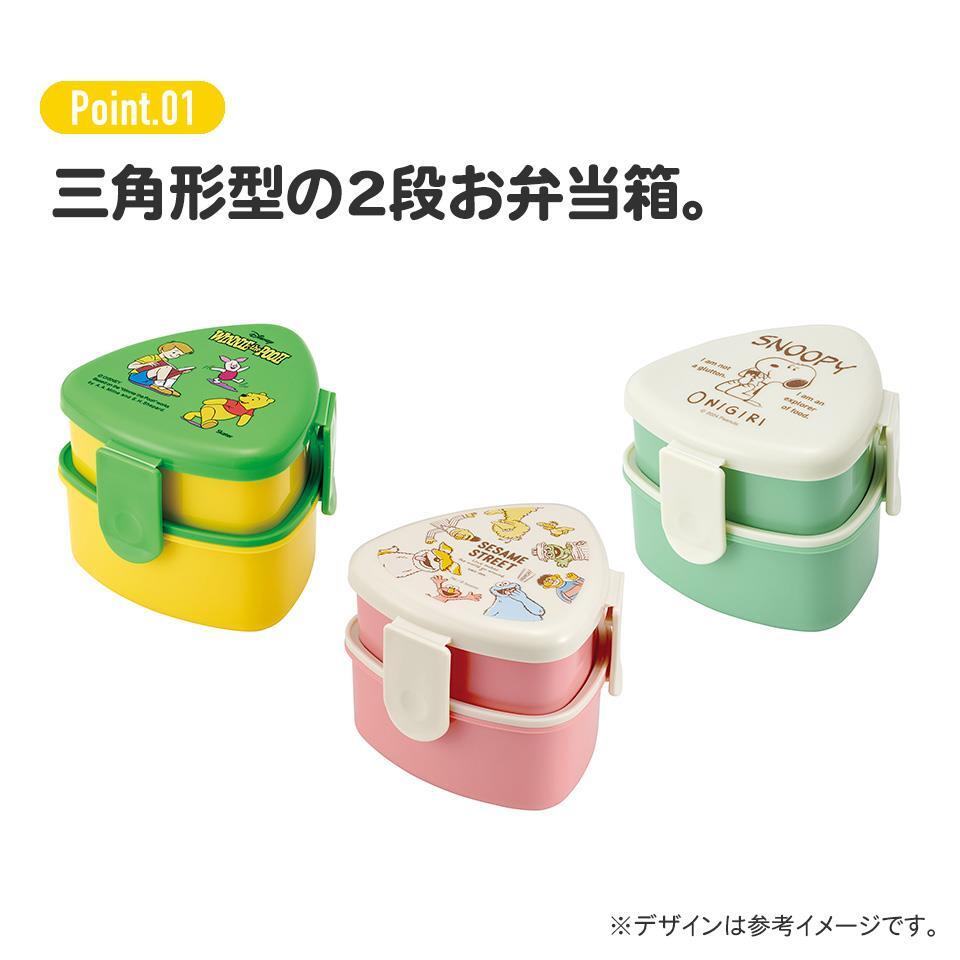 ●三角おにぎりとおかずが入る三角型のランチボックス。