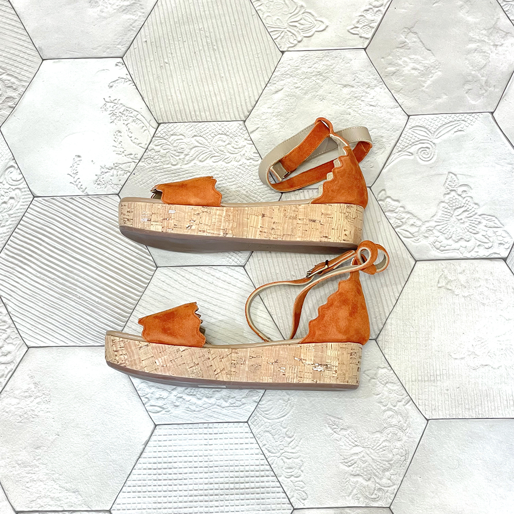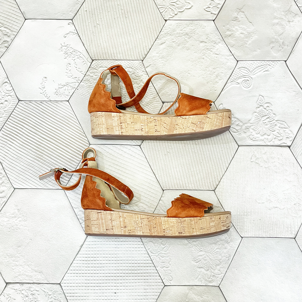 ◆イタリア製 ファビオルスコーニ【FABIO RUSCONI】TILLY390 AMALFI やぎ革 スエード アンクルベルト コルクソールサンダル 36◆