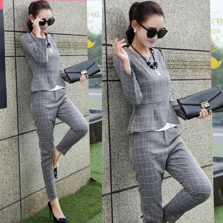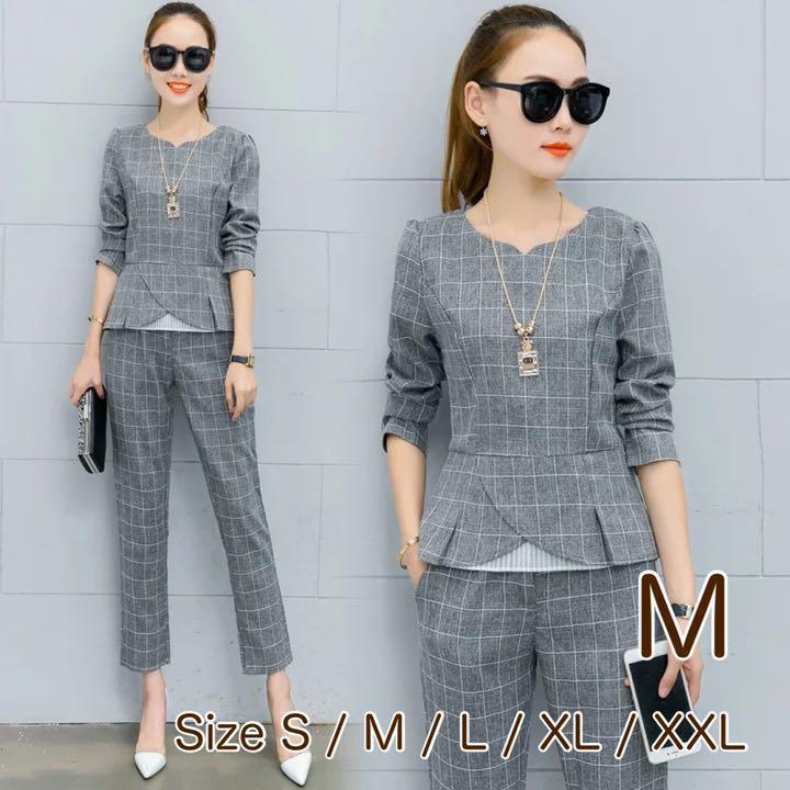 婦人用 チェック柄フォーマルパンツスーツ セットアップ