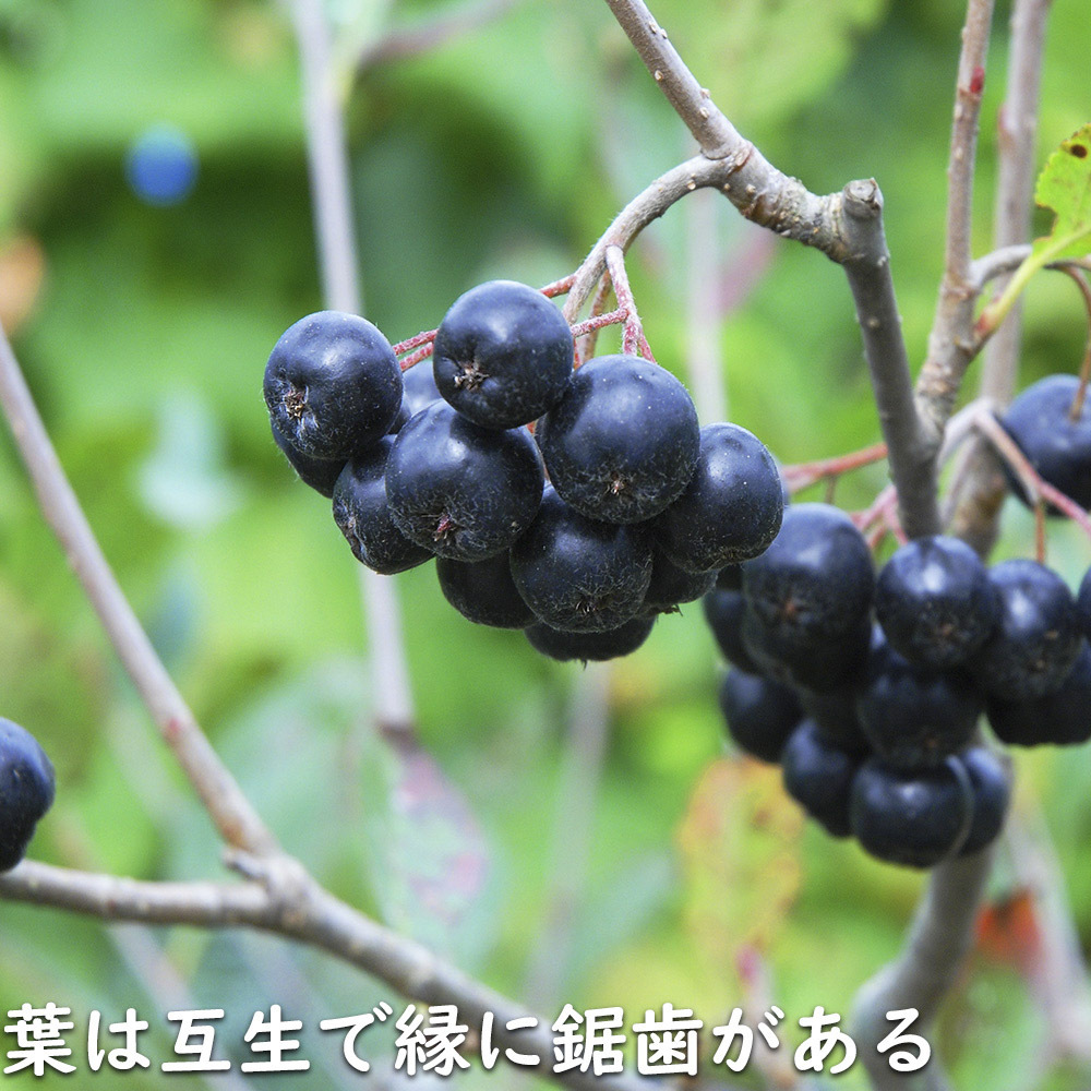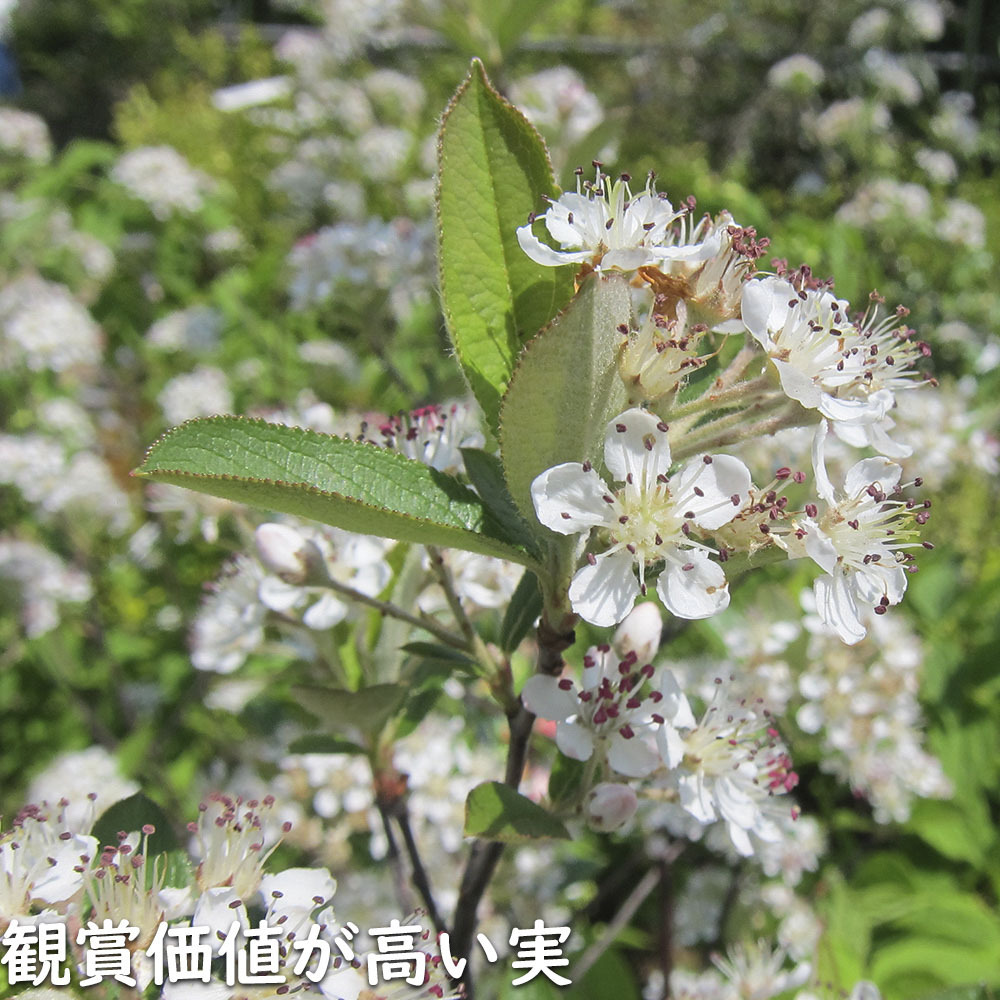 【商品情報】アロニアは2mになる落葉低木です。北米が原産です。花は5弁の小花を多数咲かせます。黒い実は食べられますが、赤い実は観賞用になります。一本だけでも実が付き実が沢山収穫できます。実は生食には向かずジャムなどに加工し食べます。ブルーベリー以上の健康効果が期待できると言われています。耐寒性、耐暑性が強く育てやすいです。