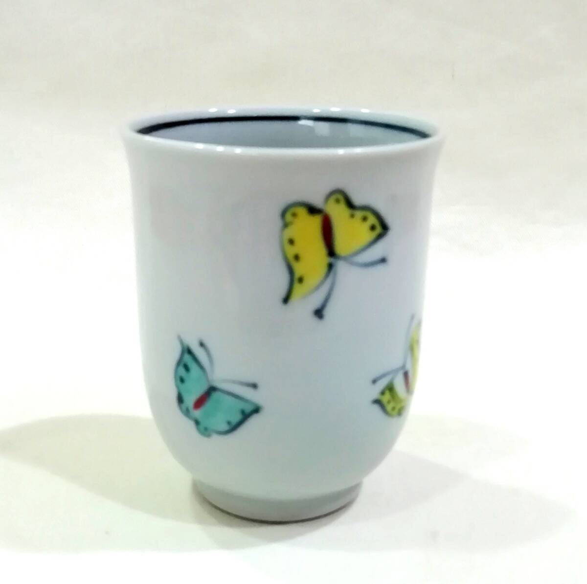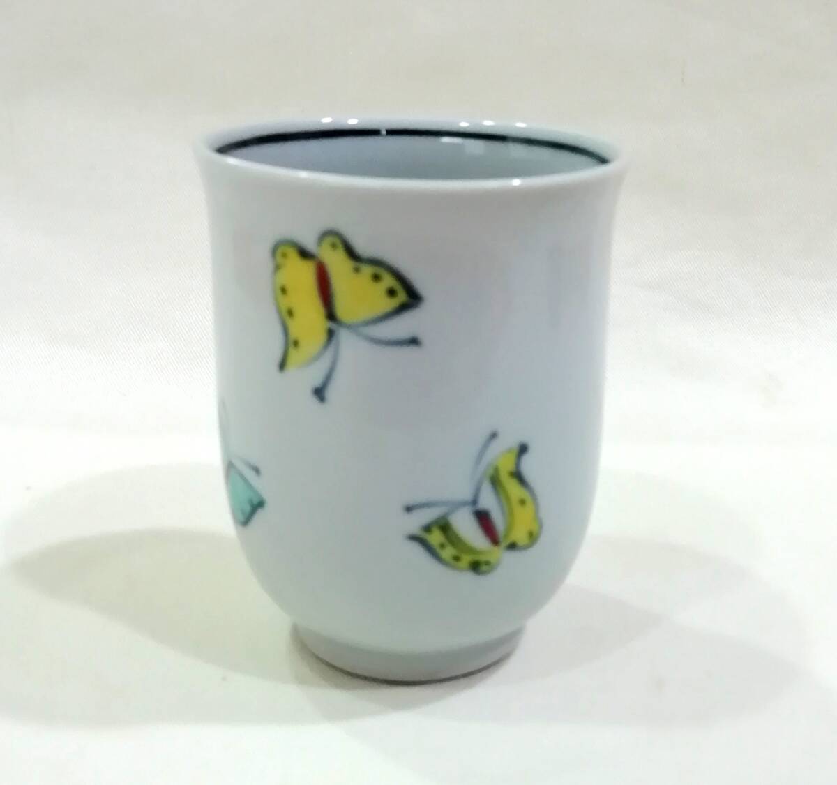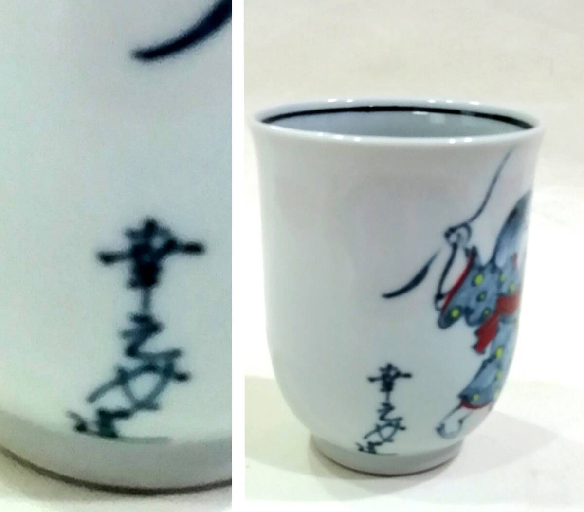 京焼 六齋窯 村田幸之介造 ”童遊び湯呑”です。正面に縄跳びをする女の子が、背面には3羽の蝶が描かれ、”幸之介造”と書かれています。童の素朴で可愛い表情、色絵の華やかな絵付けに魅力があります。初代幸之介 (昭和6年〜平成11年) 昭和51年 南林社京都府知事賞受賞、昭和52年 日本南画院特賞受賞、昭和53年 日台韓三国展、 昭和54年 日本南画院理事、平成3年 清水焼の絵付指導始める 各百貨店にて個展。二代幸之介 昭和38年〜 昭和56年 父の指導を受け修行、平成11年 二代目幸之介として作陶、平成15年 横浜高島屋、平成16年 大阪高島屋にて個展。少し古いものですが目立つような傷みはありません。京焼 六齋窯 村田幸之介造 ”童遊び湯呑”が楽しめます。古いものである事をご理解の上、写真で判断頂ける方にお願い致します。古いものである事をご理解の上、写真で判断頂ける方にお願い致します。口径約7,0㎝、高さ約8.8㎝。