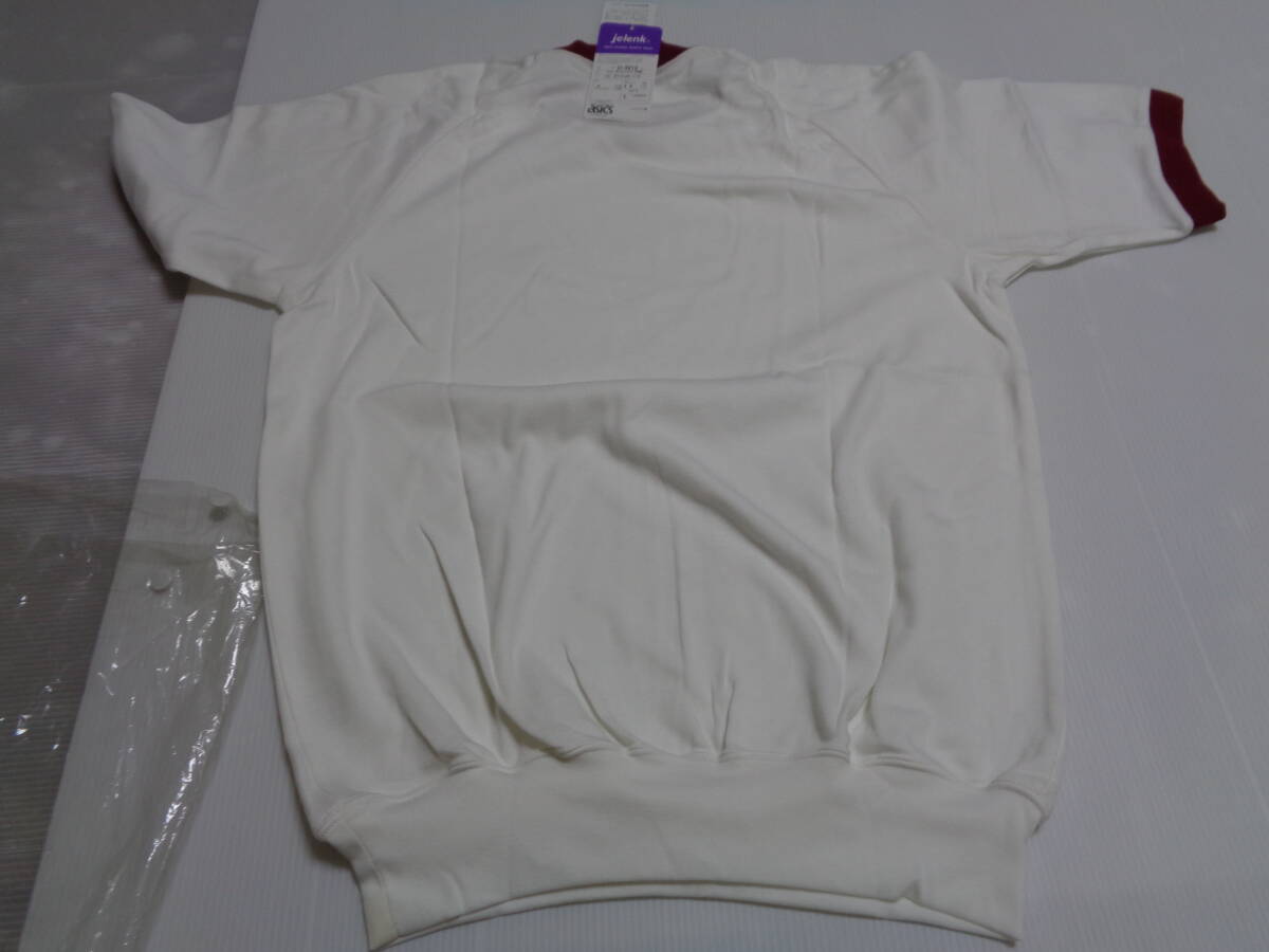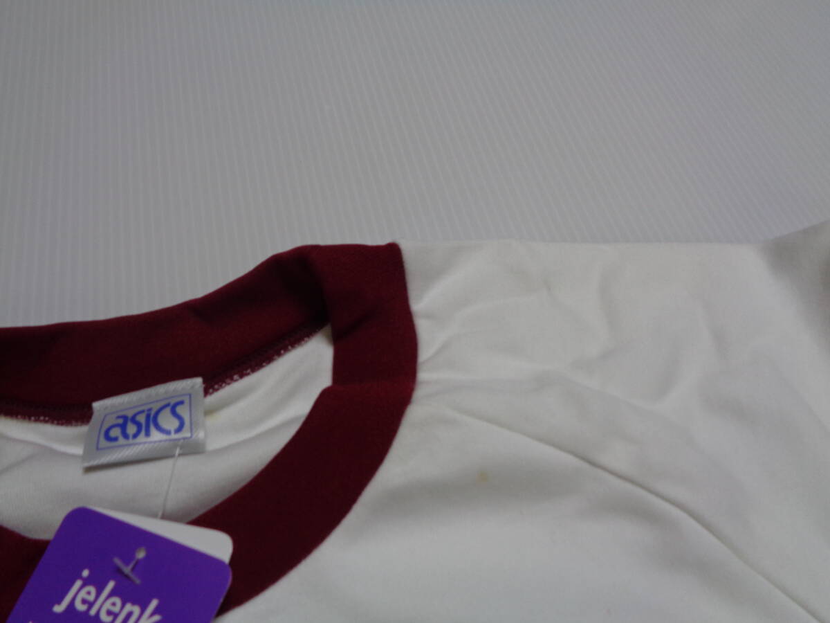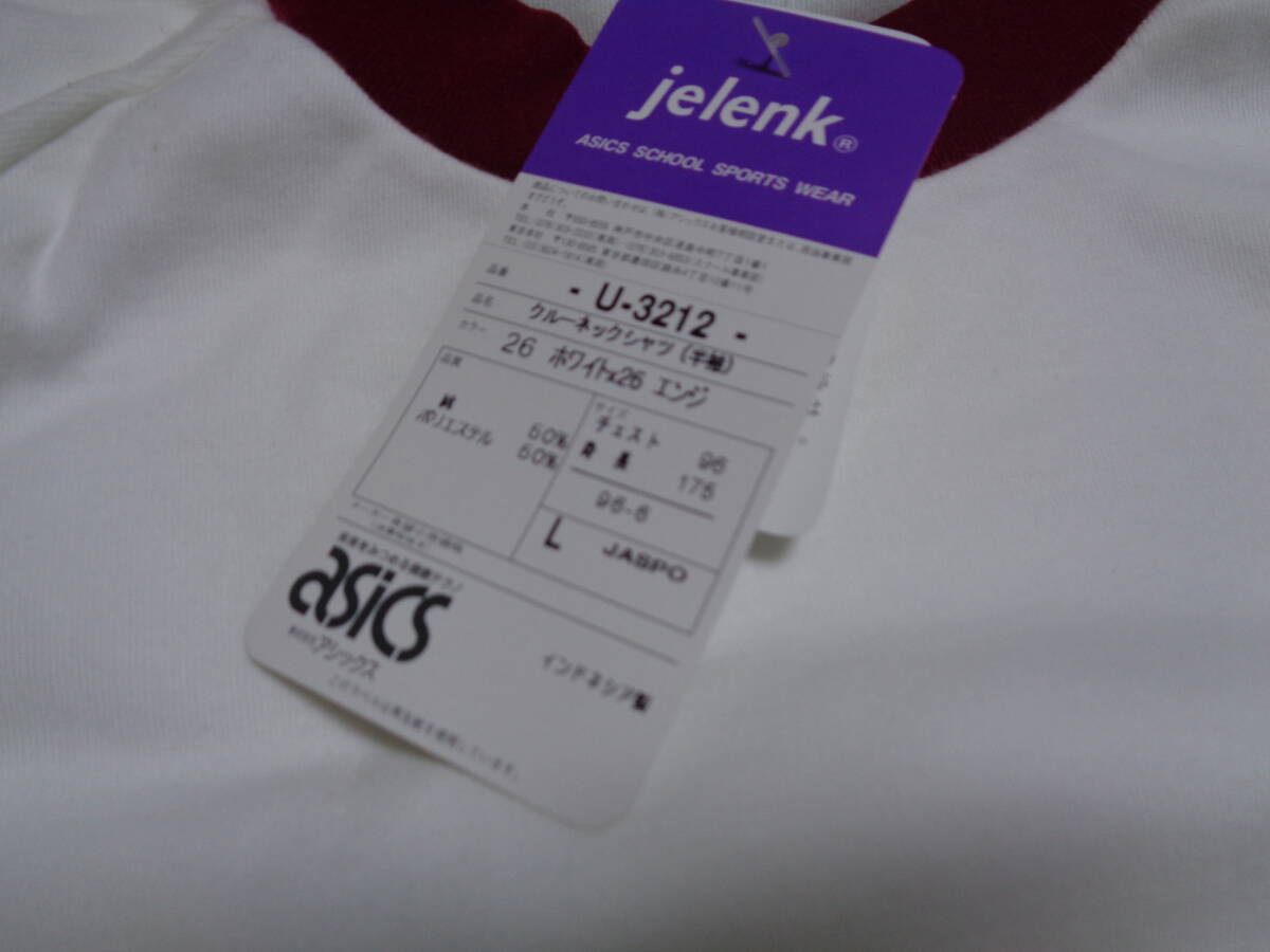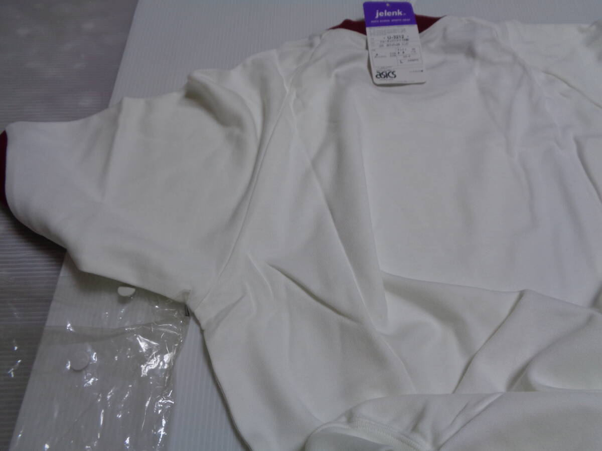L  白×エンジ U-3212 jelenk ジェレンク アシックス 半袖 Tシャツ 体操着 体操服 昭和レトロ 未使用カビシミ!
