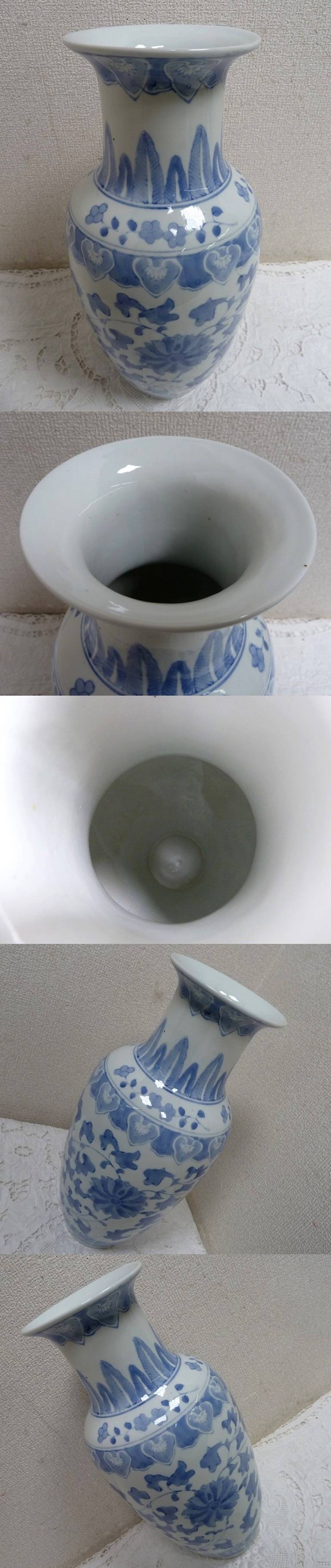 (☆BM)陶印あり/マンダリンレトロ 染付 花瓶 高さ35㎝ 花器 壺 中国 陶器製 置物 オブジェ 唐柄 花紋