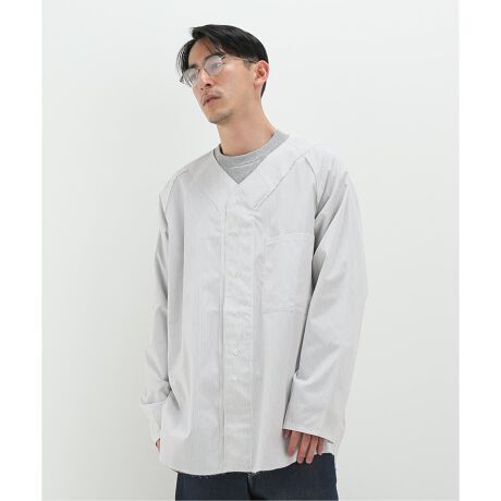 スポーティーなアイテムのベースボールシャツを上質な素材使いとブランドらしい断ち切りの意匠でドレスライクに仕立てたシャツ。オーバーサイズのシルエットなので、前開けによる羽織としてもサマになる一着です。