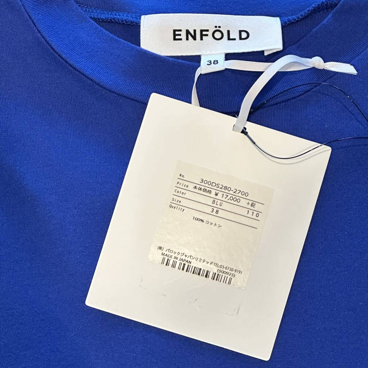 着用数回 美品 ENFOLD エンフォルド スビン天竺 アシンメTシャツ 38 ブルー