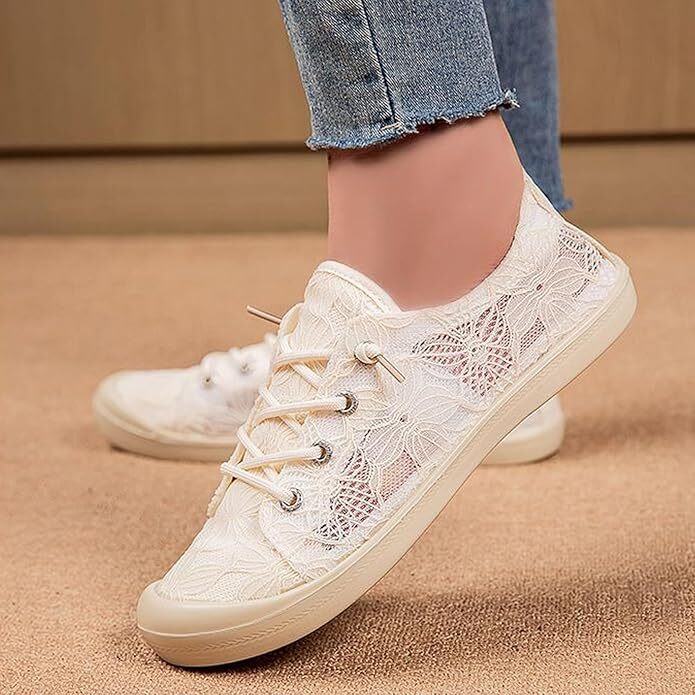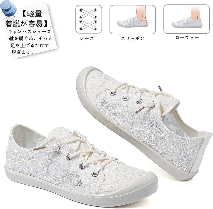 【新品・未使用】レディース レース風スニーカー/スリッポン(24cm)