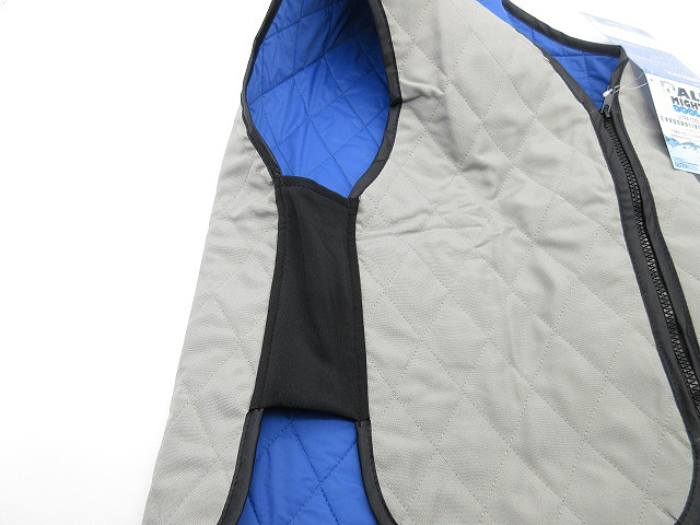 | 【 ULTRA COOL クールベスト グレー Lサイズ 】 ★~☆米国陸軍採用特殊生地 水で濡らしてクールダウン!バイクなどに最適!熱中症対策★~☆ ■オートバイ、自転車ツーリング、バイクでの配達業務などの熱中症対策に最適! ■蒸発冷却技術(気化熱)を利用した画期的な冷却服。水に1~2分ほど浸し、やさしく水を切って着用。 ■5~10時間にわたって冷却効果があります。 水の力だけで身体を冷やしてくれます。 ■保冷剤などは一切使用しないECOな商品です。 米国陸軍、韓国警察隊、二輪部門でハーレーダビッドソン、BMW、スポーツ業界ではアディダスにOEM供給されております。 ■米国TechNiche社同様のOEM生産ラインで製造されている商品、ALL MIGHTY(R) ウルトラクールベストです。 【取扱いのご注意】 ●ULTRA COOLベストは、製品と体との間に一定の空気の流れを確保すると効果的ですが、身体にぴったり着用する場合は、下にTシャツなどを着用するとすきまができるのでお薦めです。 ●体に害の有る物質は一切使われておりませんので、素肌に直接着ても安全性の点で全く問題は有りません。 ●水に浸ける時間は1~2分程度で十分ですが、仮に浸けっ放しにしても内容物が破裂するようなことはありません。しかし、連続して10分間以上浸けたままにしますと中のウルトラクール素材が過度に柔らかくなってしまい、絞った時に縫い目から出てしまう可能性がありますので避けて下さい。 ● 強く引っ張ったり絞り方が強過ぎると、生地が切れる・破損する 又は内部ポリマーが出る可能性があります。優しく両手で握るようにして絞り、水滴が落ちない程度に水切りをして下さい。 【洗濯】 ●ぬるま湯での手洗いのみ可能です。洗濯機、柔軟剤や漂白剤は使用しないで下さい。アイロンやドライクリーニングも厳禁です。 ●汚れがひどい時はデリケート洗剤とブラシをご使用ください。 ●乾燥は、必ず吊るし干しをして下さい。雨天時での使用で濡れている場合も同様です。 ● しばらく使用しない時には完全に乾かしてから保管してください。ULTRA COOL製品は繰り返しご使用出来ますが、縫い目などから内部のポリマー素材が縫い目などから出てやせて来ますと、水分の吸収量が減ってきます。 また、連日のご使用や長期間の繰り返し使用で少しずつ吸水効果が落ちることがございます。予めご了承をお願いします。 ●素材の特性上、摩擦により色落ちや色移行などが発生する可能性がございます。 【注意事項】 ●ウルトラクールベストは非毒性ですが、特にお肌がデリケートな方や着用の際に万一合わないと感じられたら直ちに使用を中止してください。 衣服が濡れる事やまれに色落ちする場合がございます。念のため、着用前にご確認してからご使用ください。 ●電気工事等では感電の恐れが有りますので、ご使用しないでください。 凍らせてのご使用はできません。 ● 輸入品のため、多少の傷、汚れ、色ムラ、ほつれ、若干サイズが異なる場合がございます。 ウルトラクールベスト企画・製造、ALL MIGHTY(オールマイティ)は商標登録です。 |
